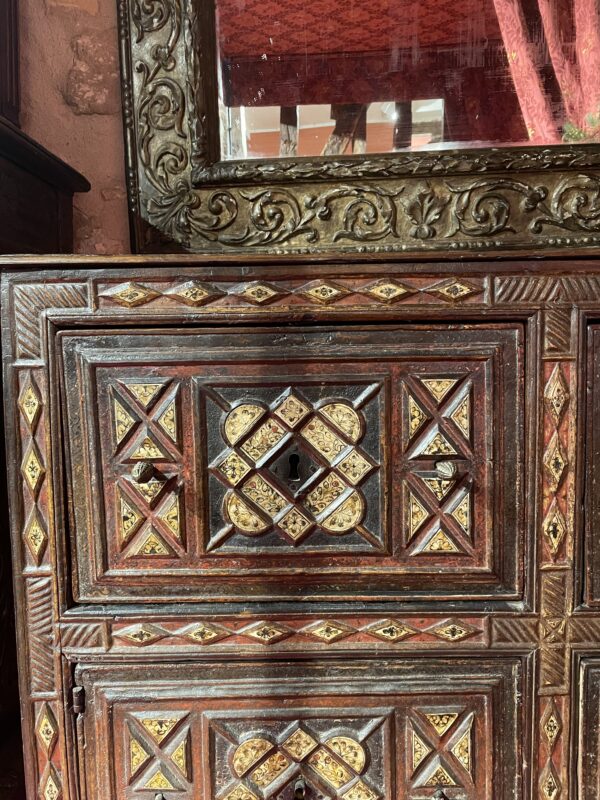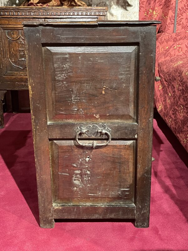 The Taquillón, which can serve as a base for the Bargueño – the favorite piece of furniture of conquistadors and missionaries, though not exclusively – is also designed for portability, with wrought iron handles on its sides.