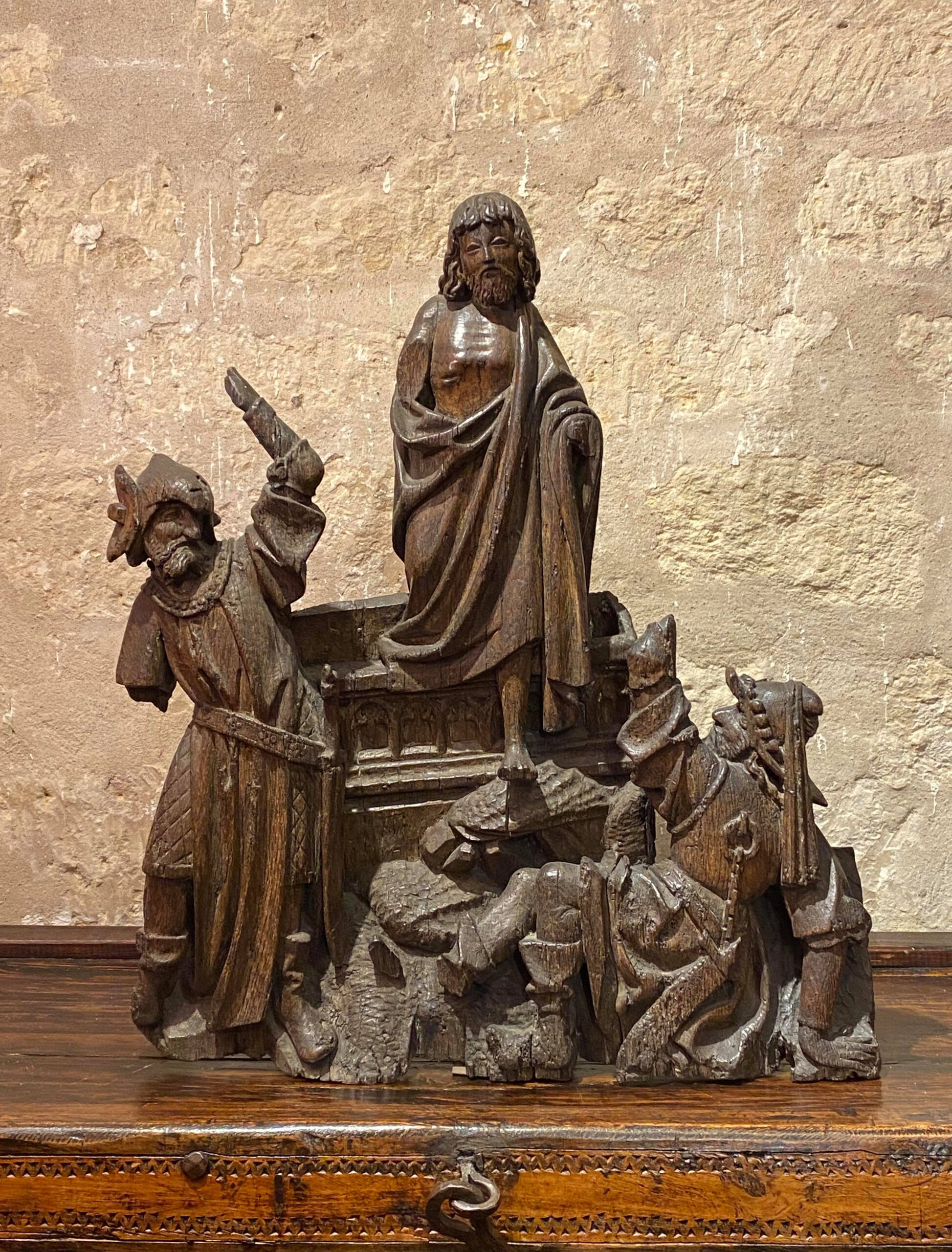 The soldiers’ armours and their expressive faces suggest this sculpture was made during the early 16th century. The same clues point at an artist who would originates from the Southern Netherlands. This carved wood probably belonged to a larger ensemble illustrating the scenes of the life and Passion of Christ.