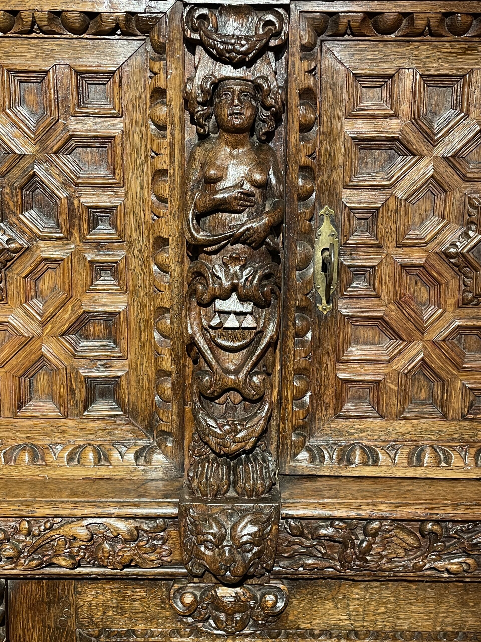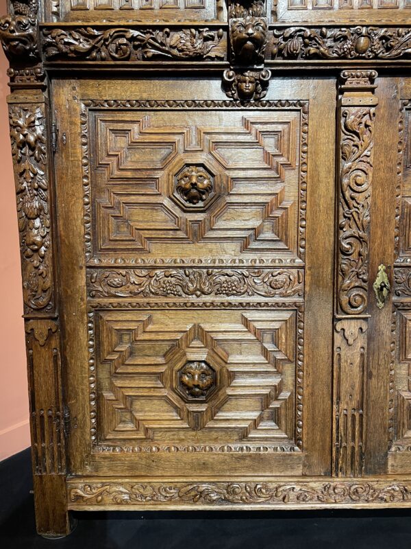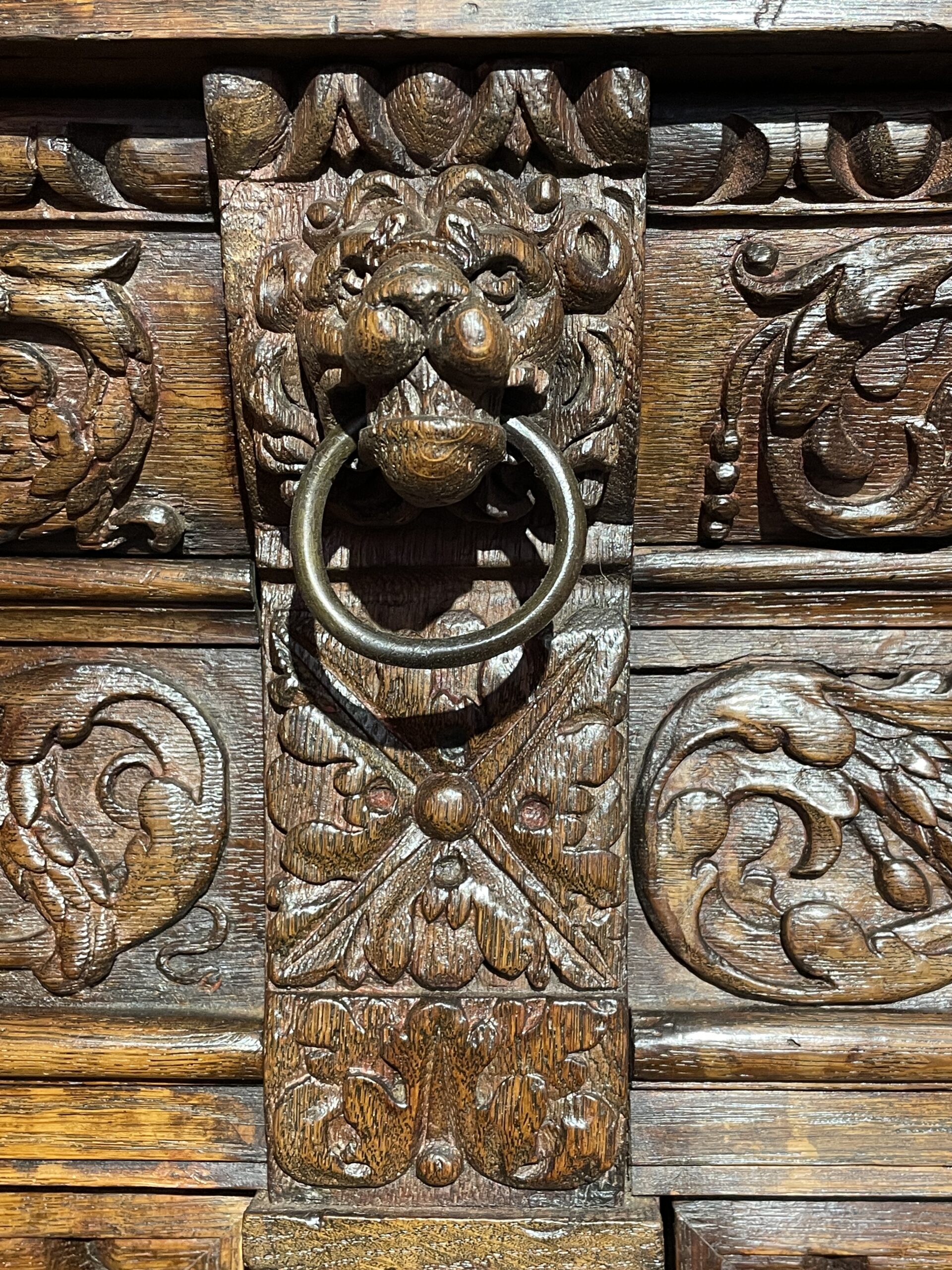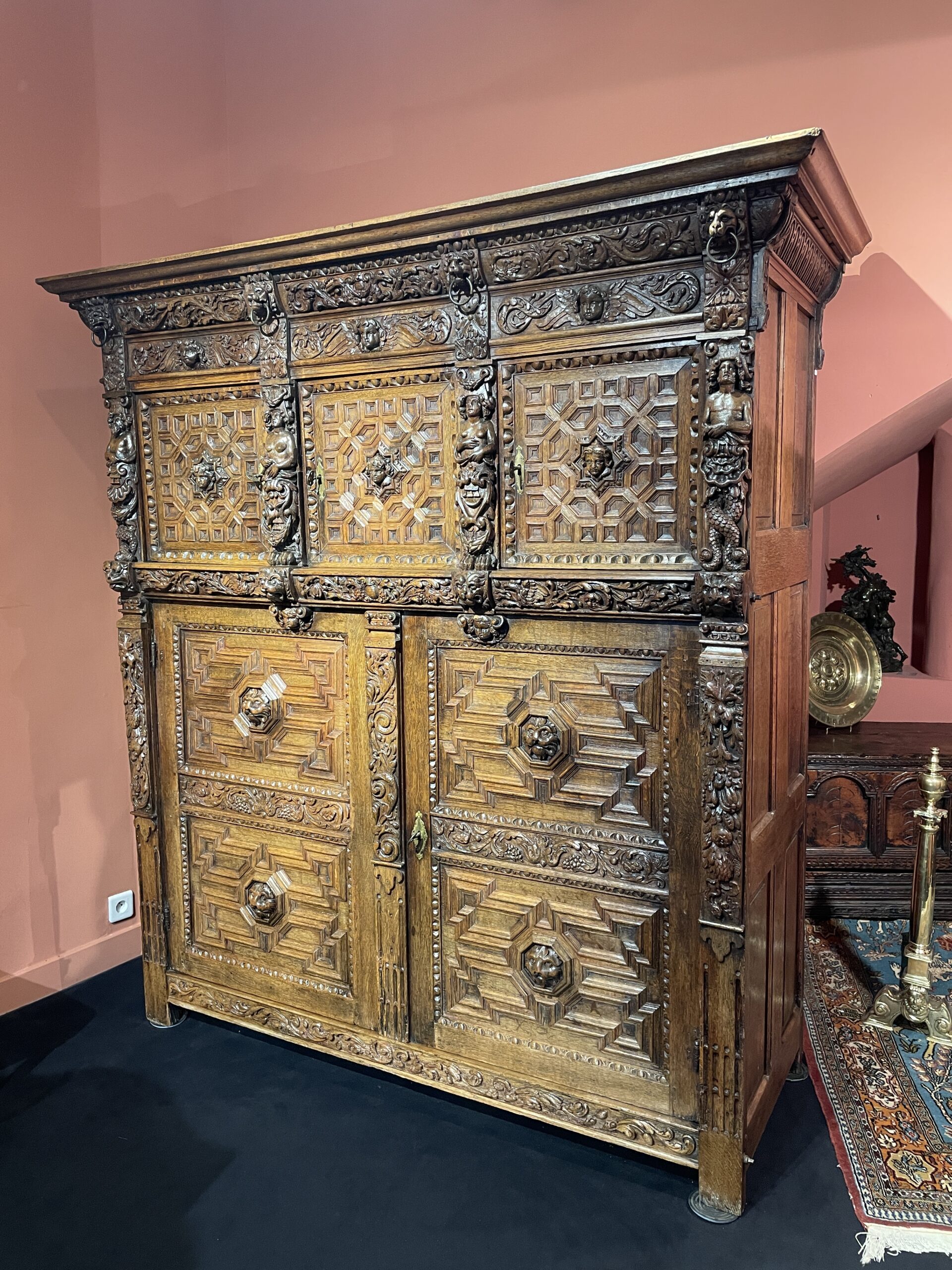 A common tradition connects Flemish furniture from northern France to Holland: the use of oak wood, the prominence of sideboards whose designs evolved from chests, and the appreciation for rich carved decoration. This Ribbank Cabinet, of exceptional craftsmanship, is a perfect example.