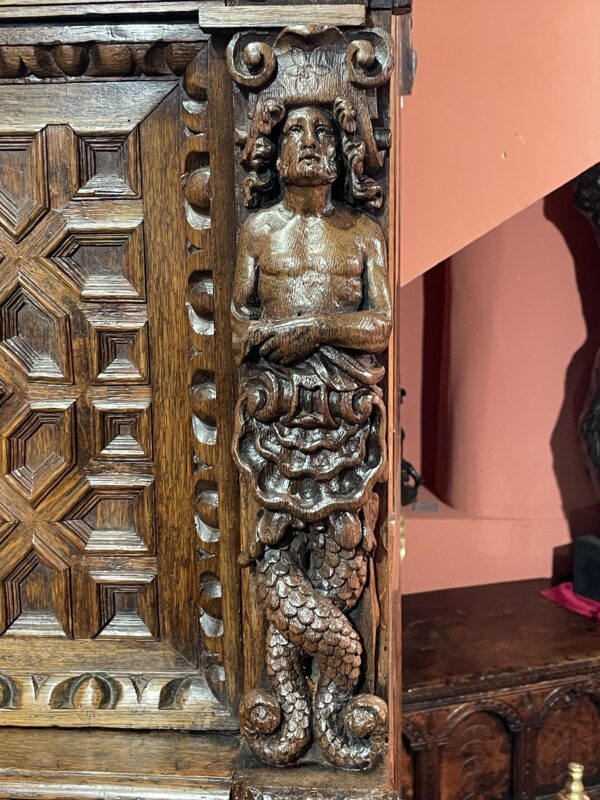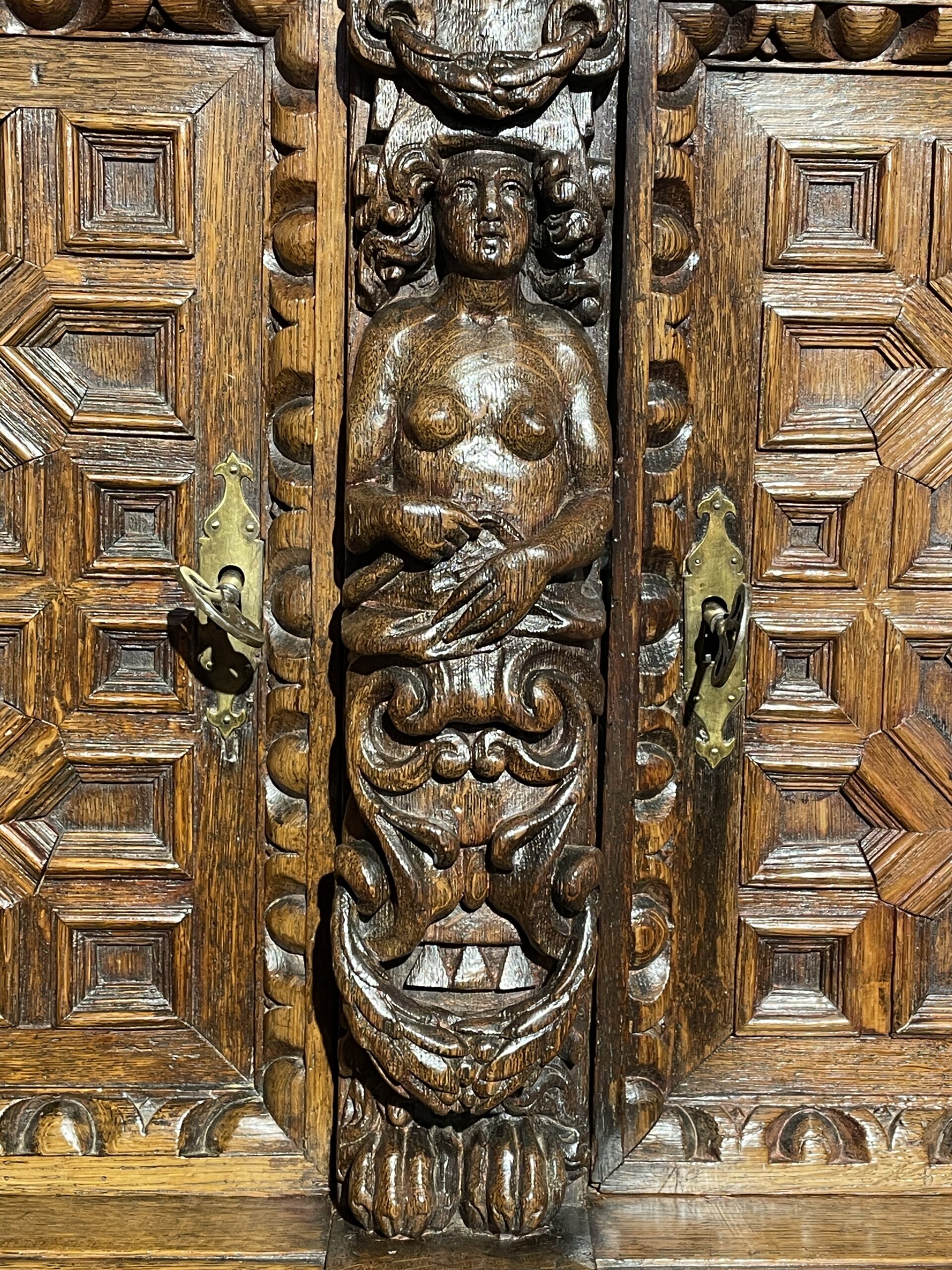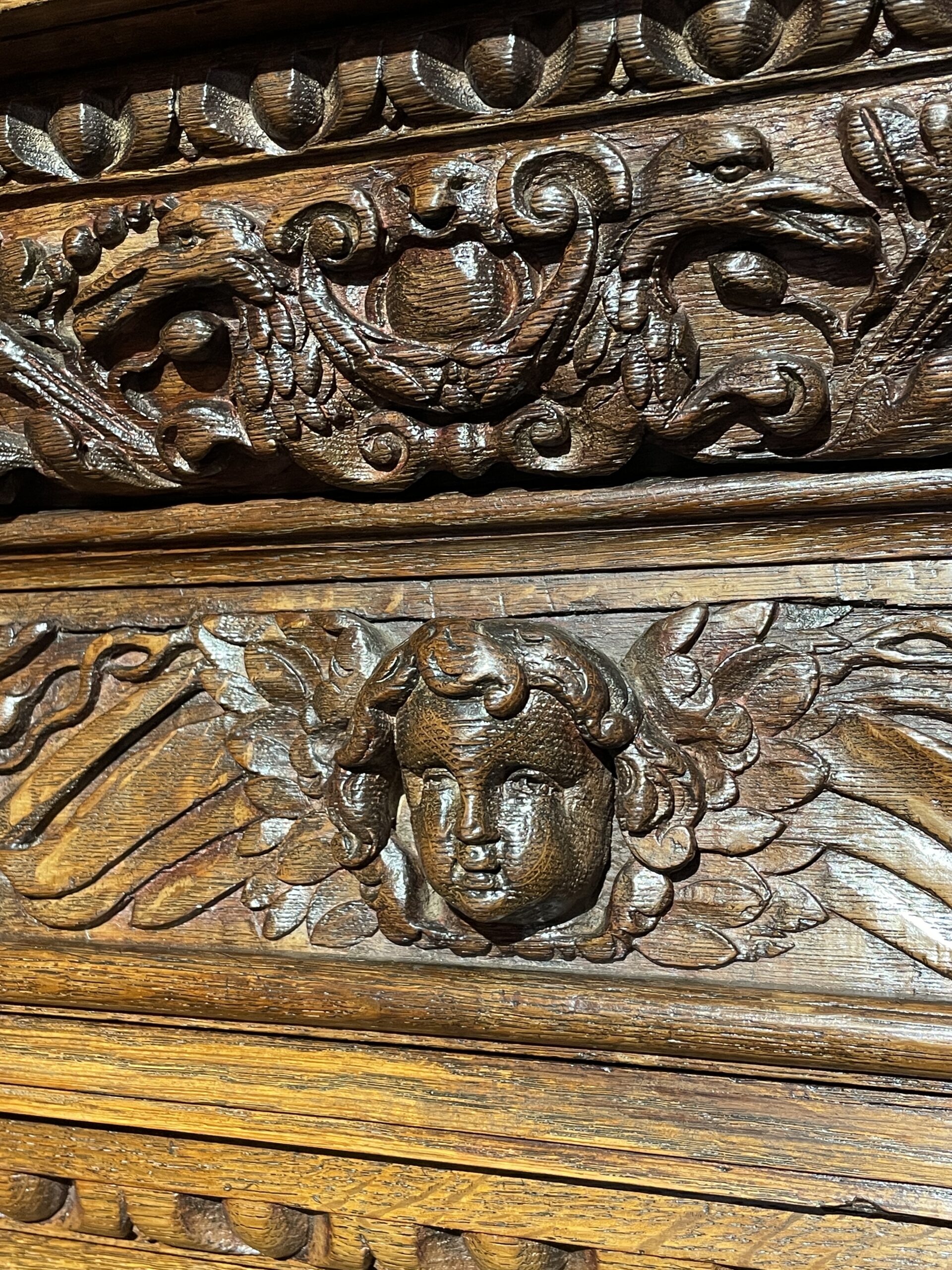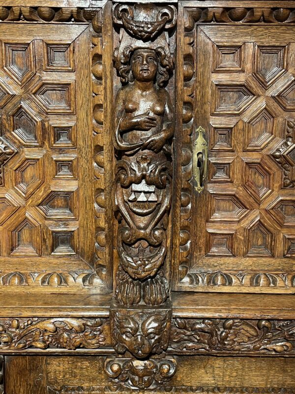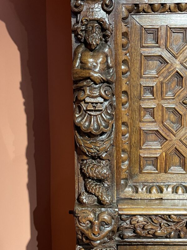 A common tradition connects Flemish furniture from northern France to Holland: the use of oak wood, the prominence of sideboards whose designs evolved from chests, and the appreciation for rich carved decoration. This Ribbank Cabinet, of exceptional craftsmanship, is a perfect example.