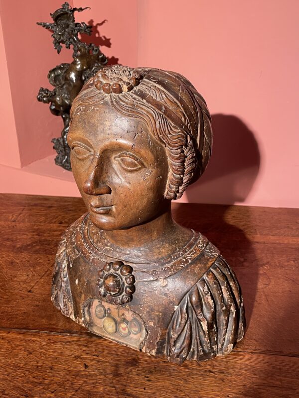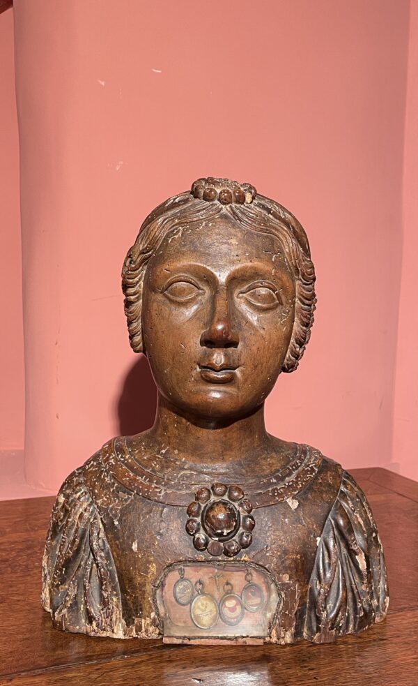 RELIQUARY BUST IN CARVED WOOD REPRESENTING A HOLY WOMAN