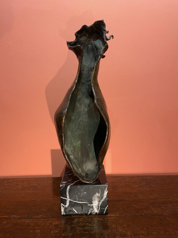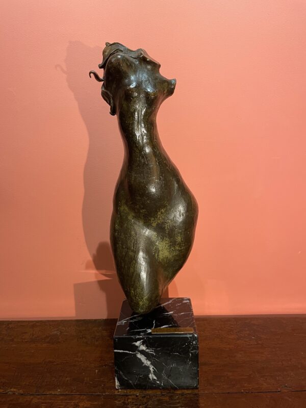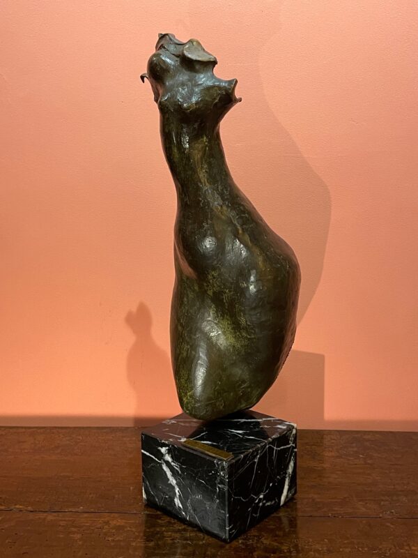 The second stage takes us on to a “pyramidal” sculptures where the emerging of the immense is obvius, of the conquest from the ground. The immense torsos,especially those of feminine forms, are completed with small and lyrical delicate heads and the very large bases are decorated with spiritual delicate tracery.