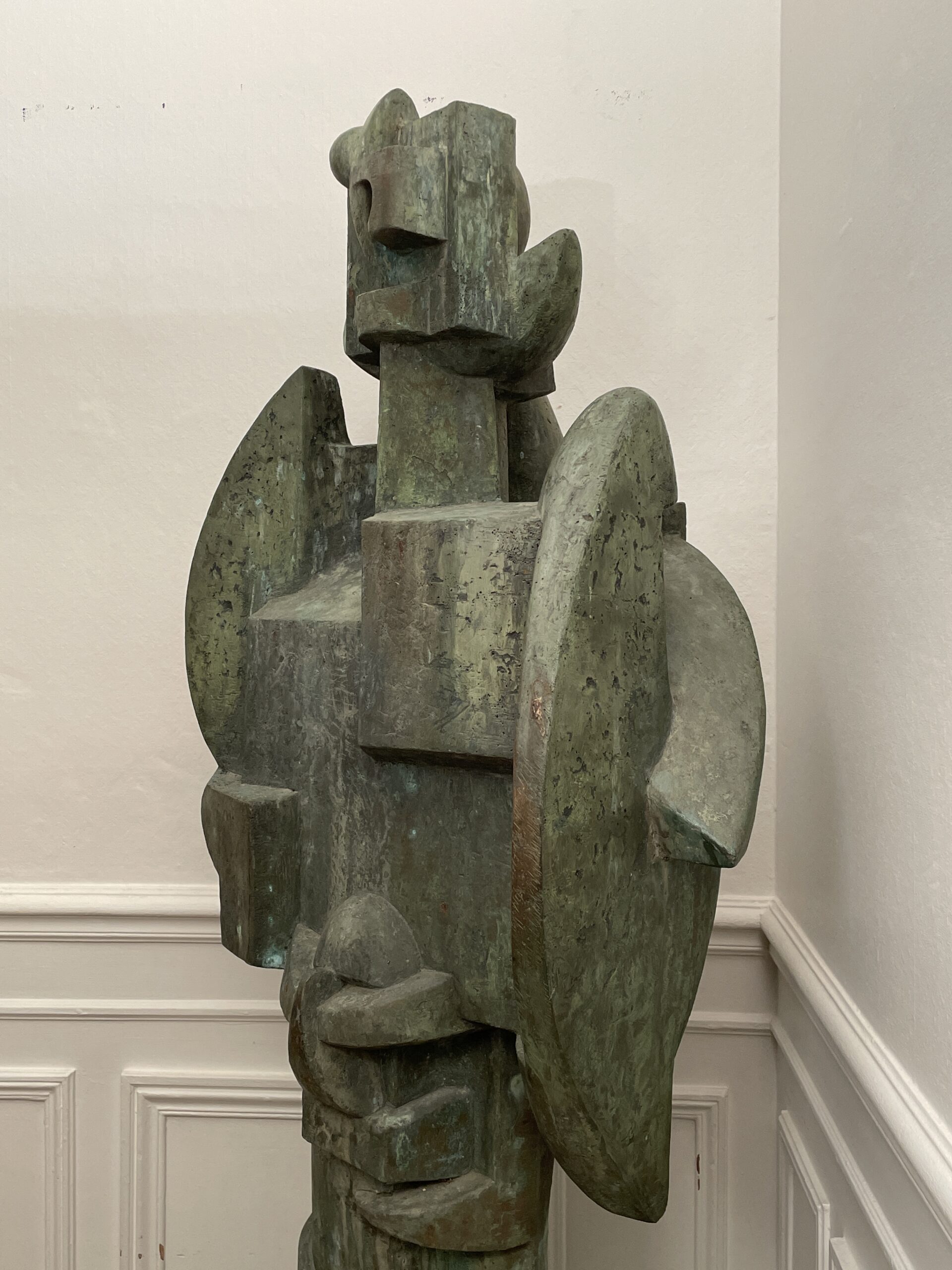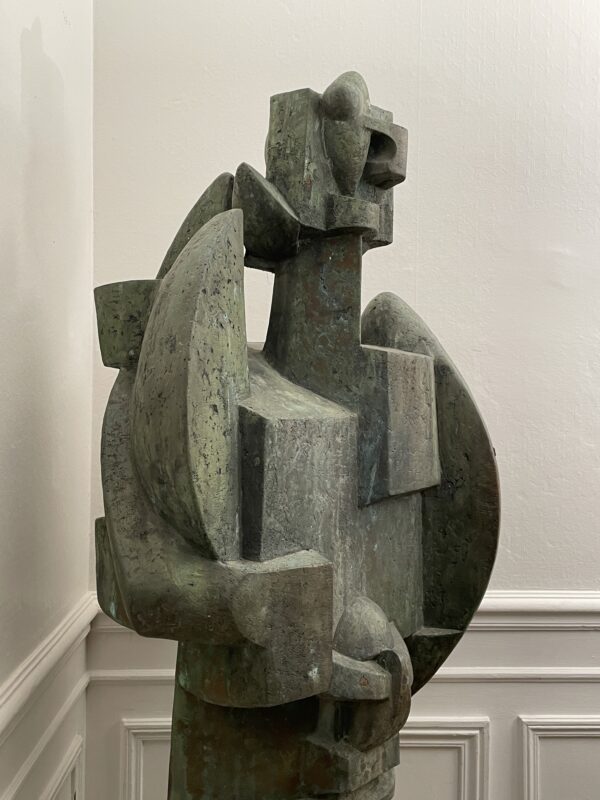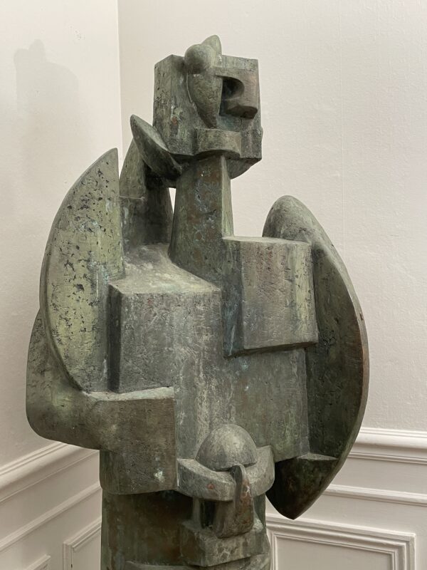Edoardo Villa was profoundly marked by the war’s atrocity. Our sculpture could represent a warrior, illustrating the artist’s bellicose past. In fact, the geometrical shapes could remind us of the posture and the weapons of African soldiers.