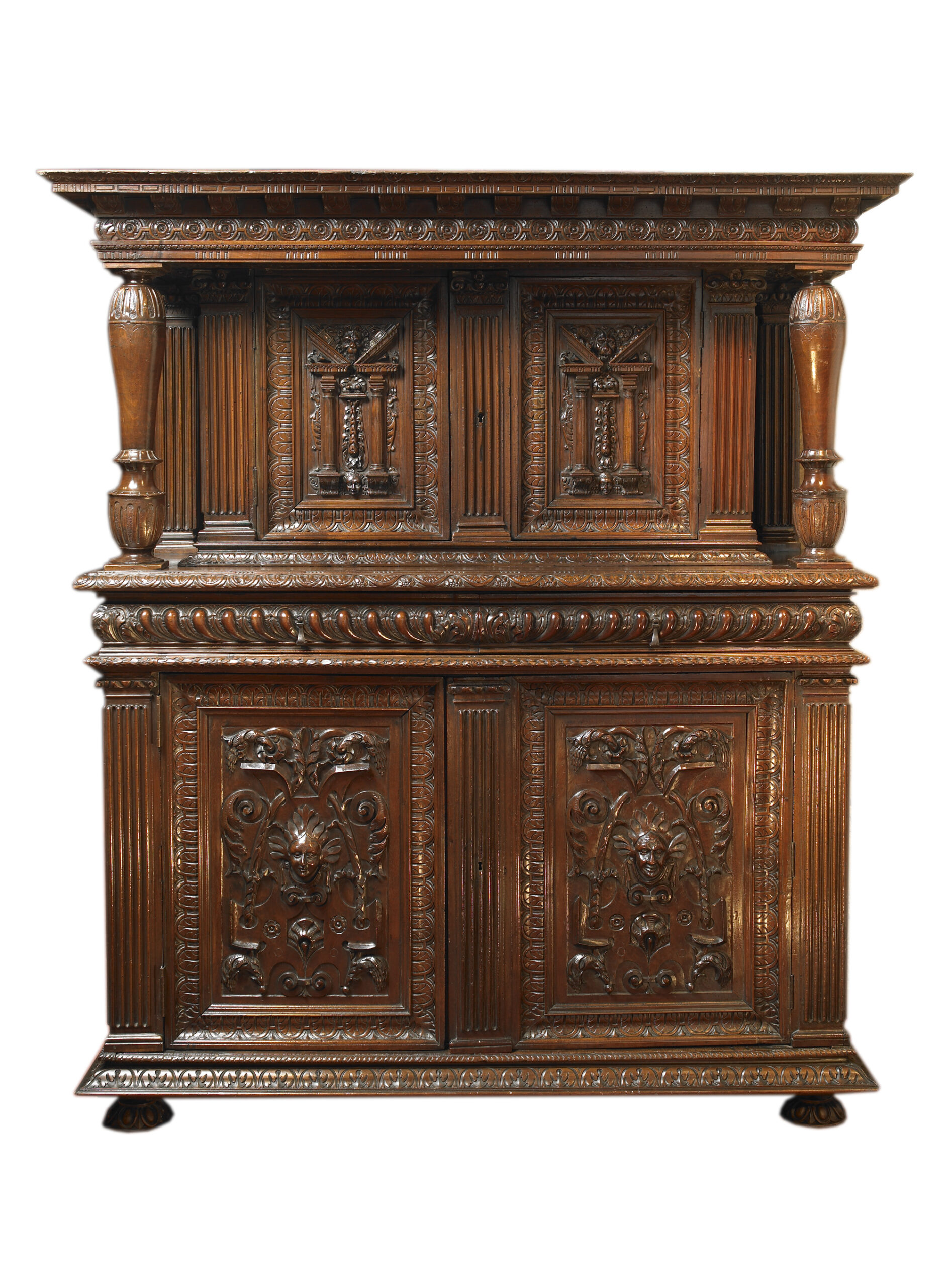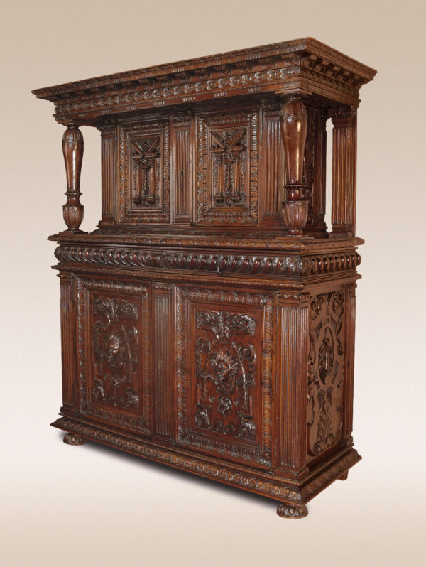 On this exceptional Lyonnais cabinet there is a mix of influences from the Burgundy region. These influences appeared after the publication of Hugues Sambin’s ‘De la Diversité des Termes’ and after his work became known in Dijon.