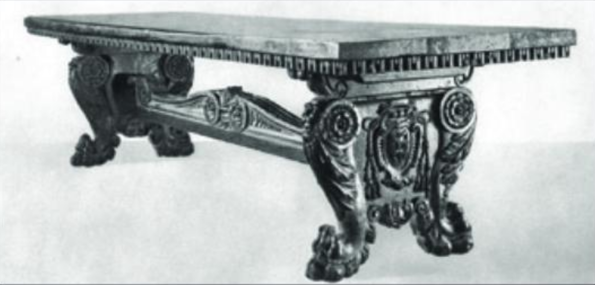 In the beginning the table was a movable furniture with removable feet, easy to build and disassemble. Most of the 15th and 16th century tables are built following the Roman cartibula principles that is a plate standing on two large stands secured by a crossbar.