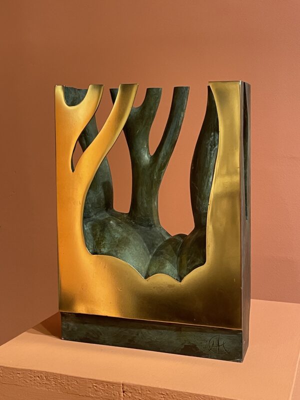 Sculpture in gilded bronze and green patina