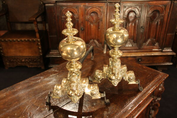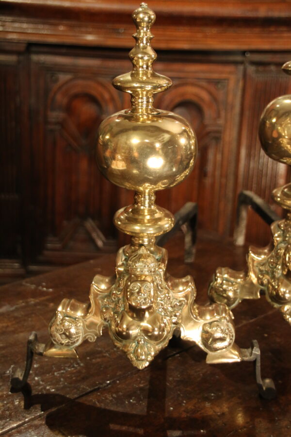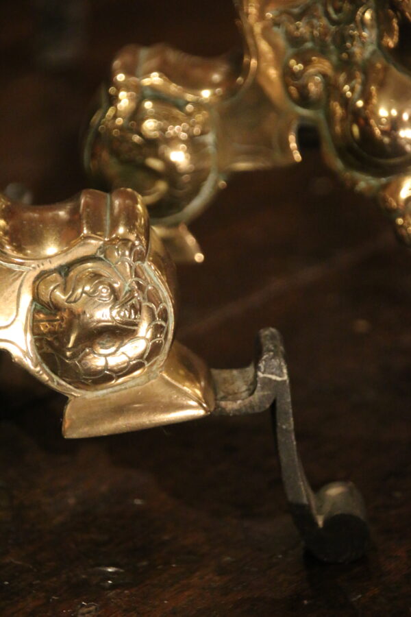 The andirons owe their name to their form : at the origin, was that of small dogs (‘chien’ in french) or squatting animals which gave first ‘chiénet’ or ‘chiennet’ then ‘chenet’.