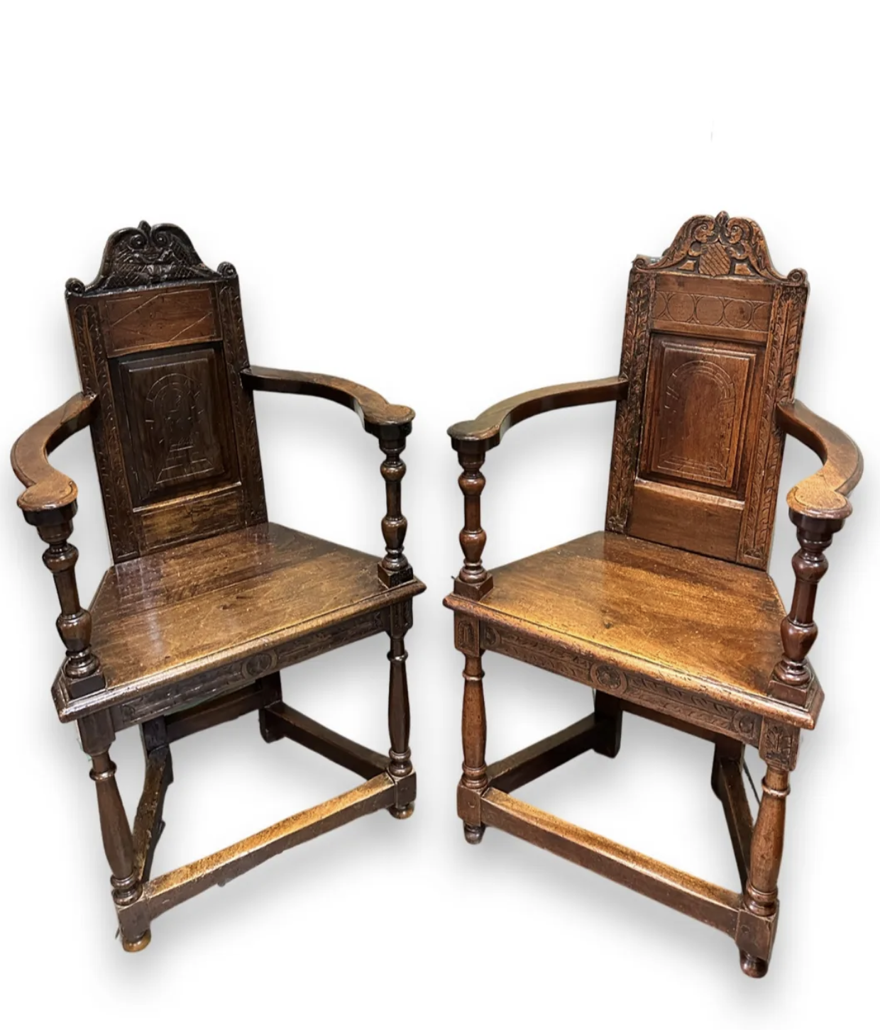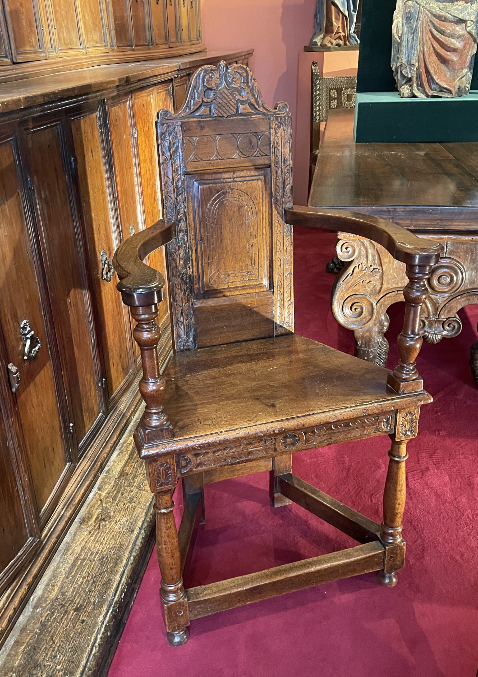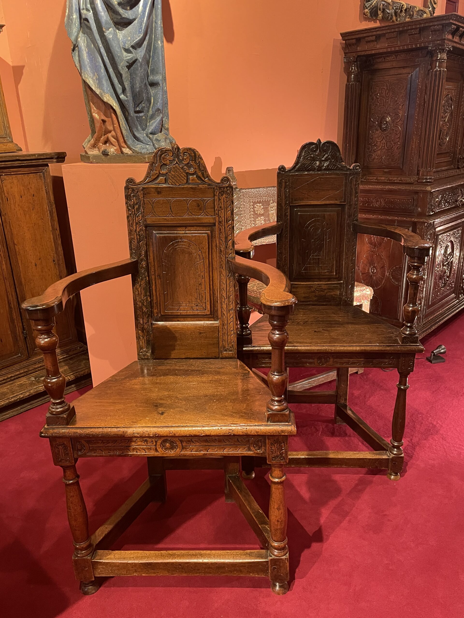 These two Renaissance caquetoires recall the spirit of Fontainebleau and the Ile de France, which used walnut and perspective arcade decoration.