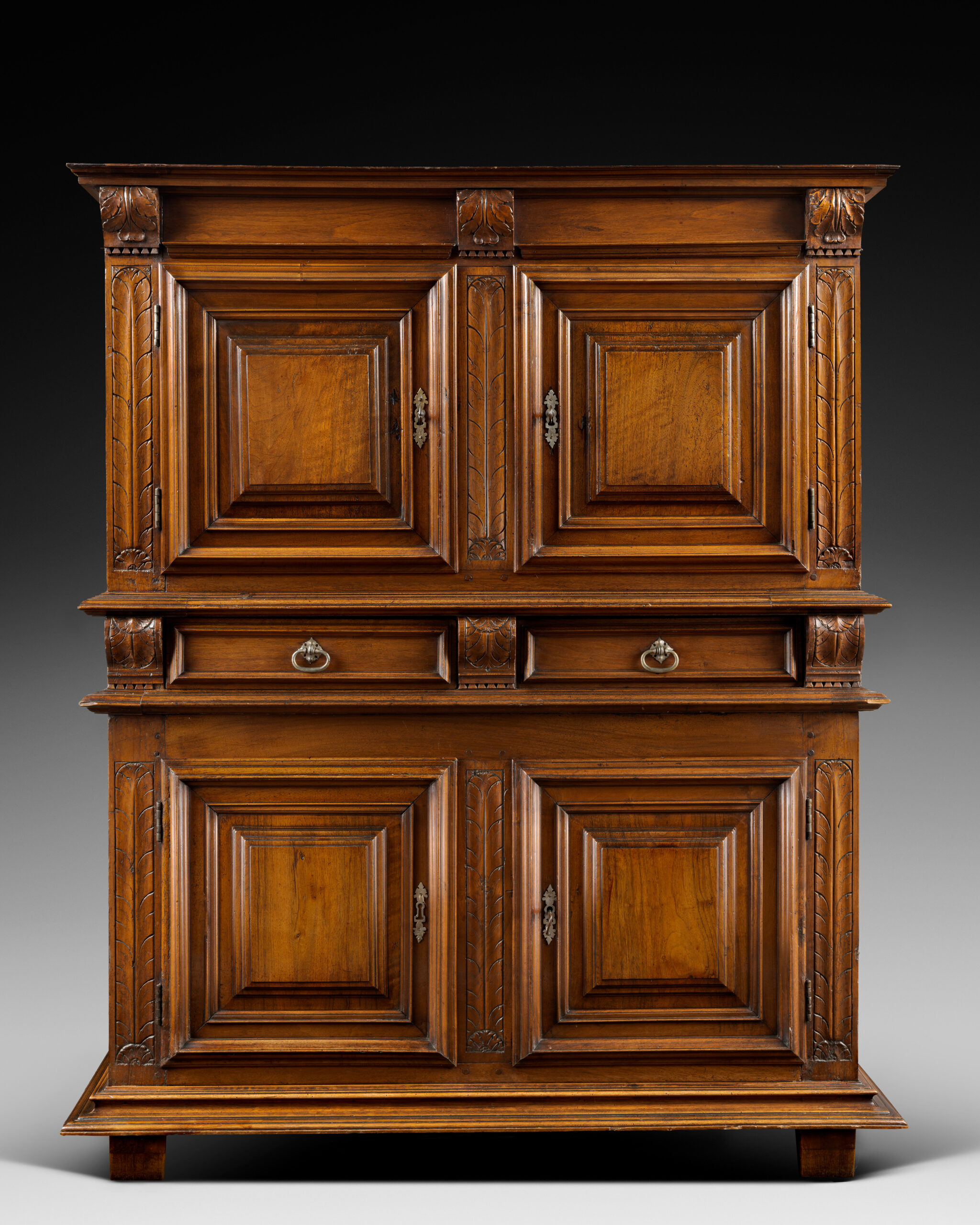 This beautiful Renaissance cabinet consists of two parts, the upper part of which is not set back.