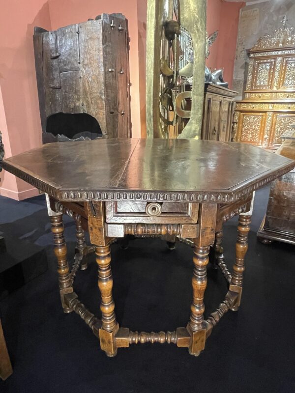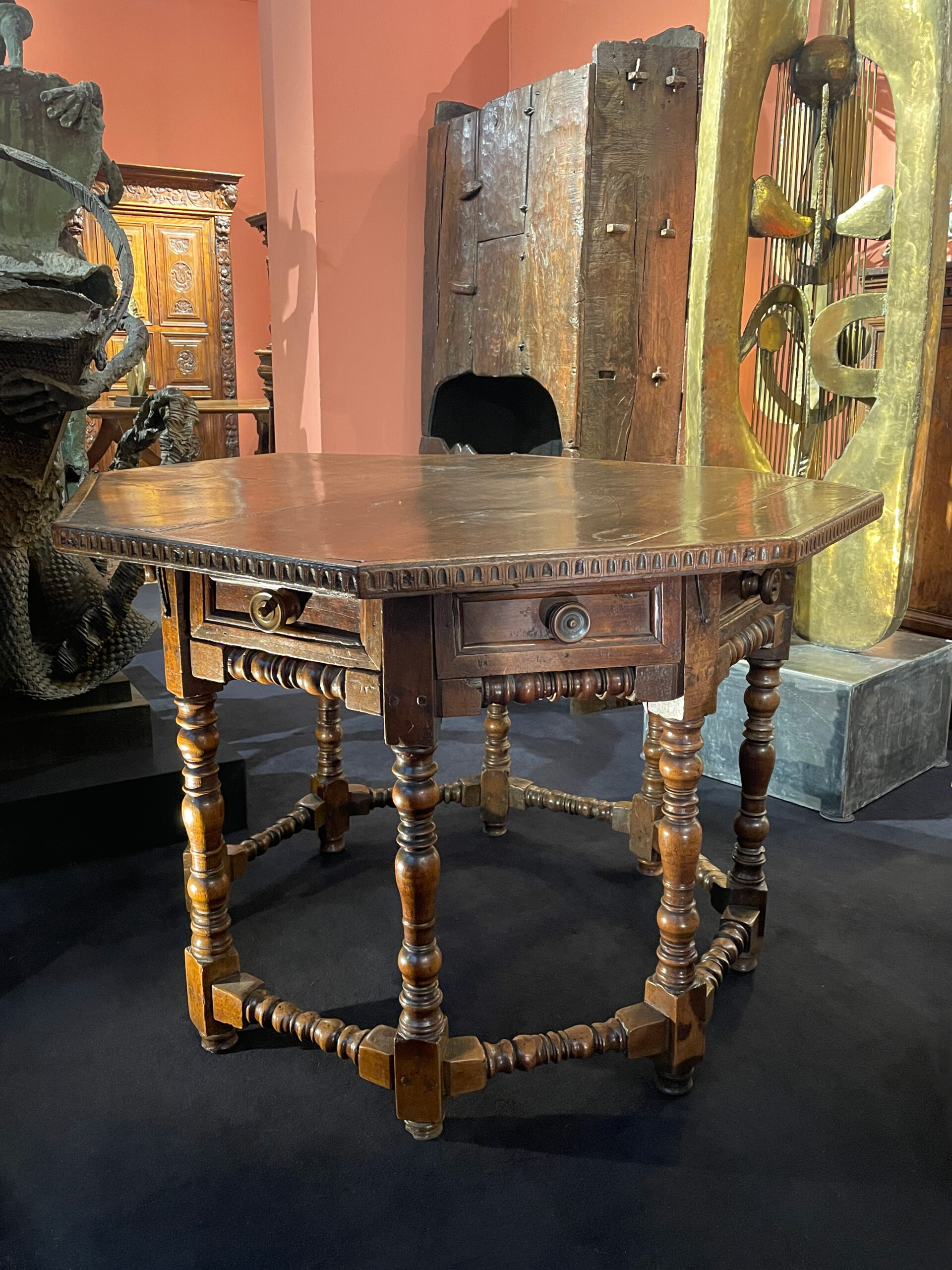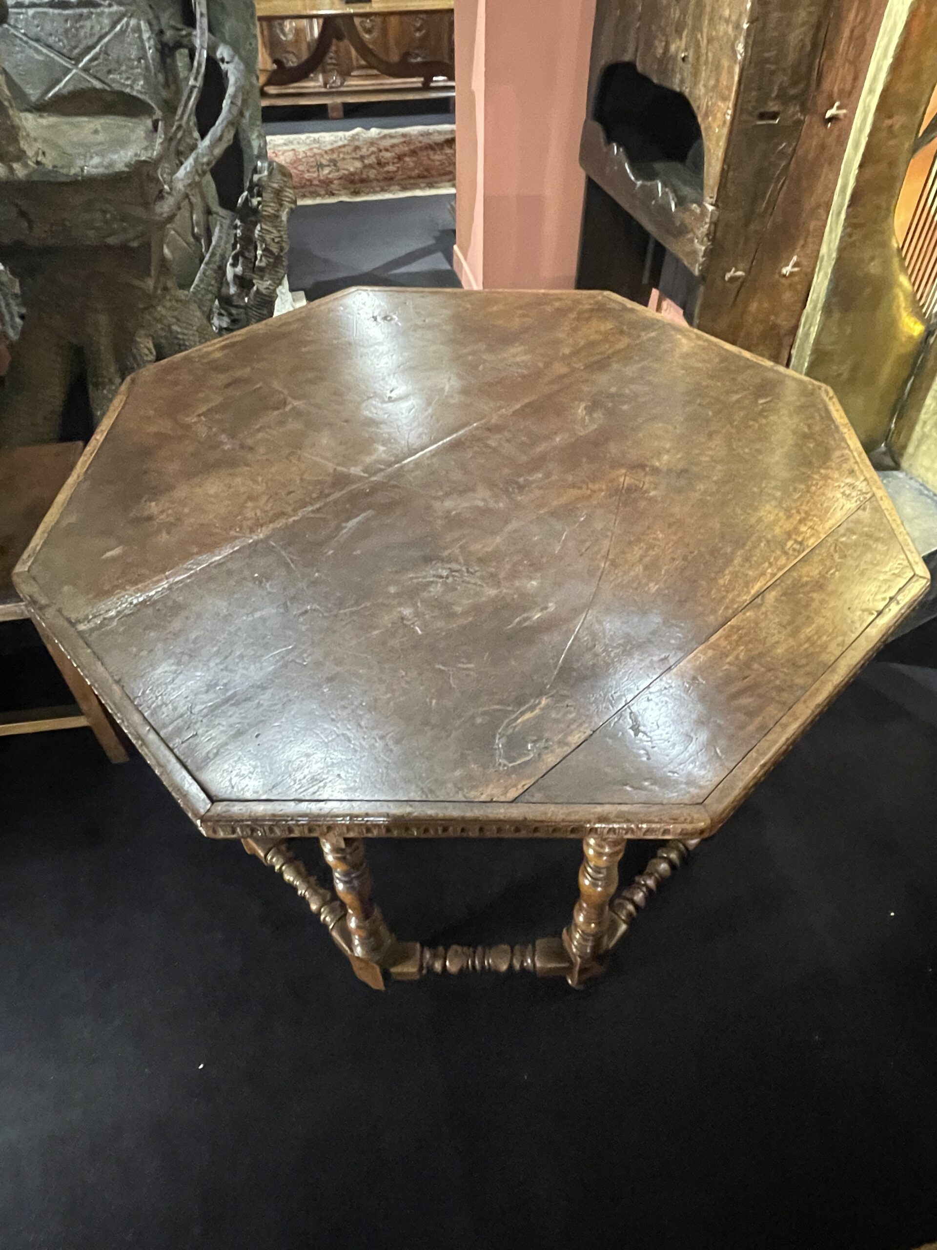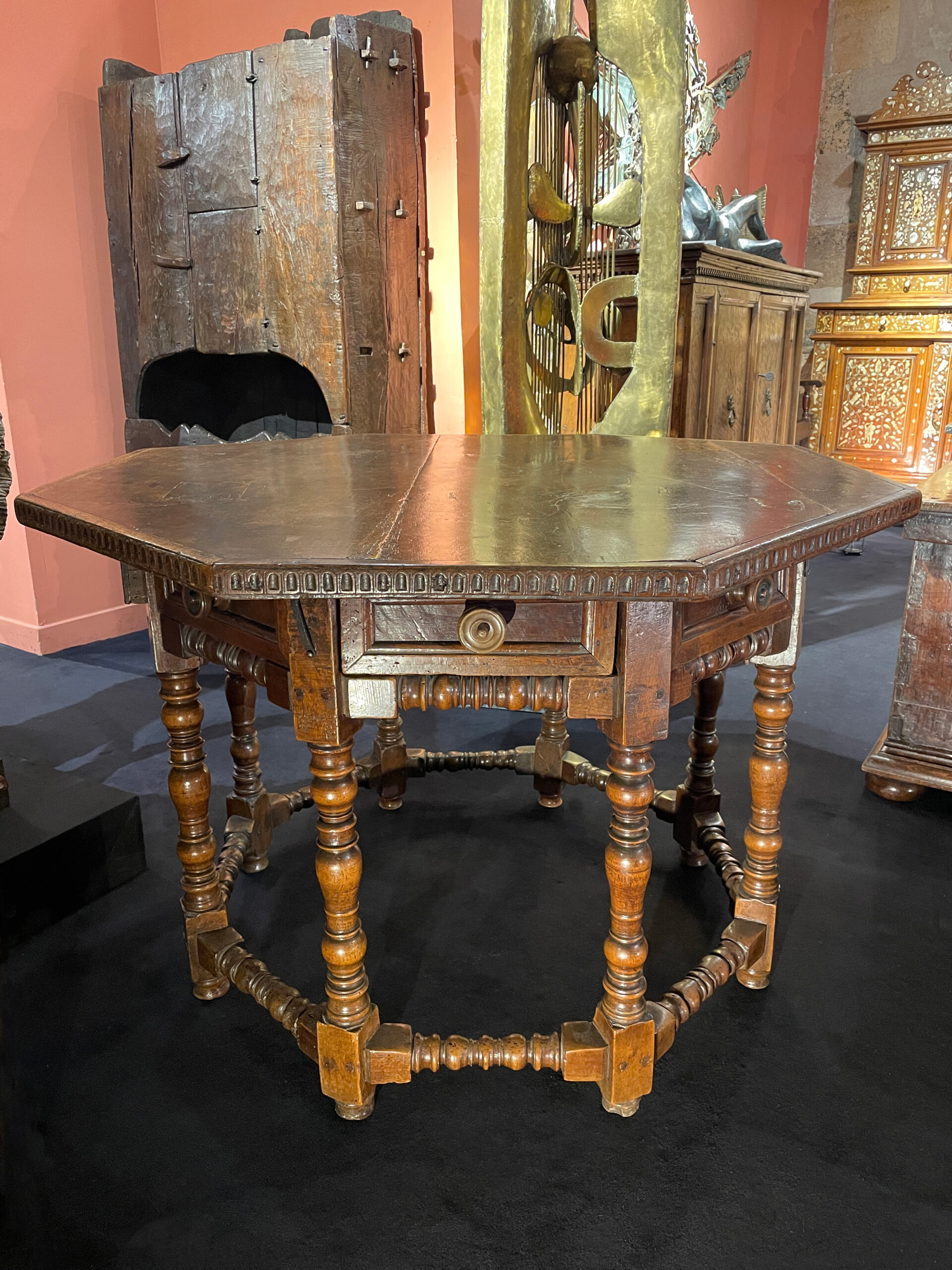With its harmonious proportions, this octagonal table is a beautiful model of balance and elegance. Its eight turned baluster legs are connected by a spacer worked in the same way.