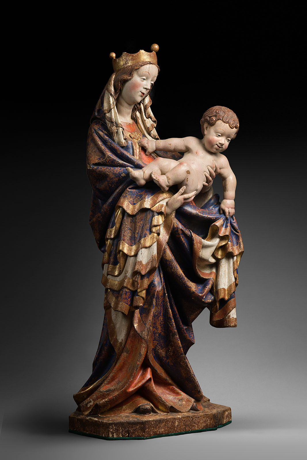 This Virgin and Child presents a gracious and somewhat mannerist attitude emphasized by a rich polychromy.