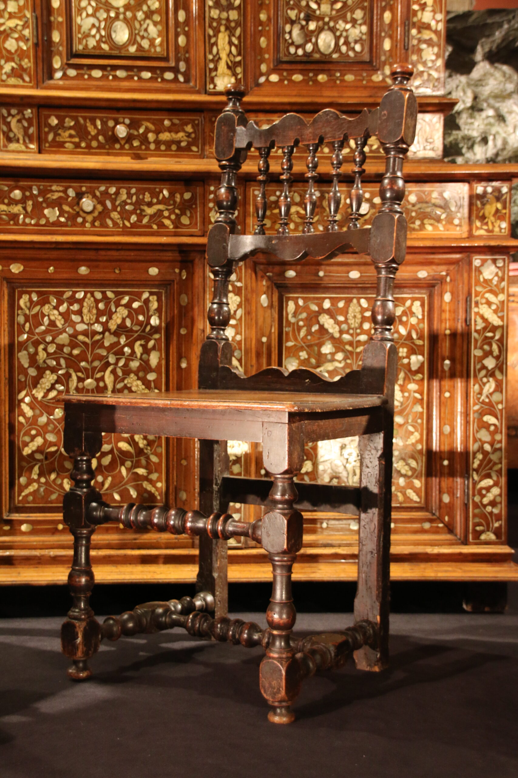 Walnut chair with turned base. The openwork back consists of five small turned balusters.