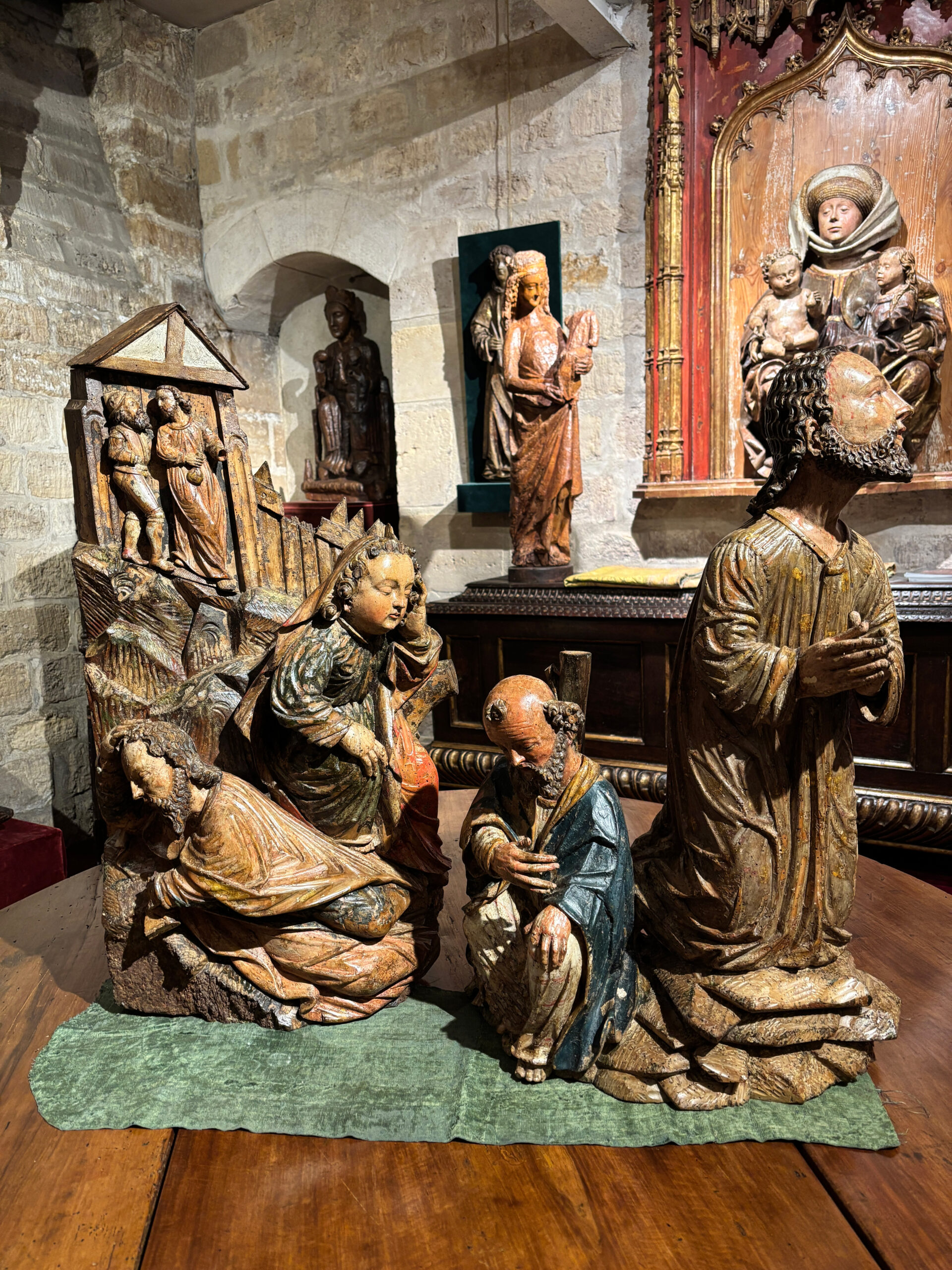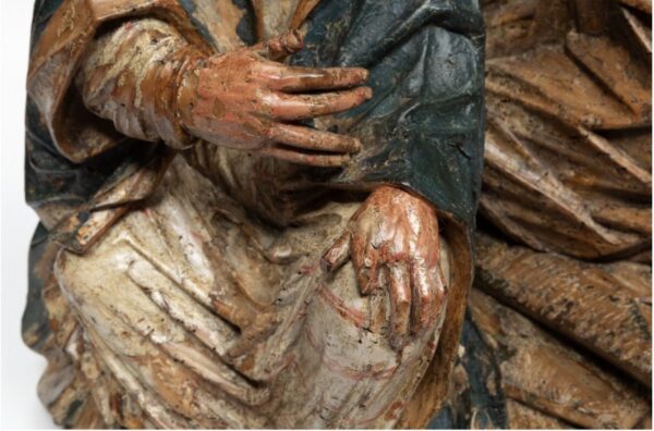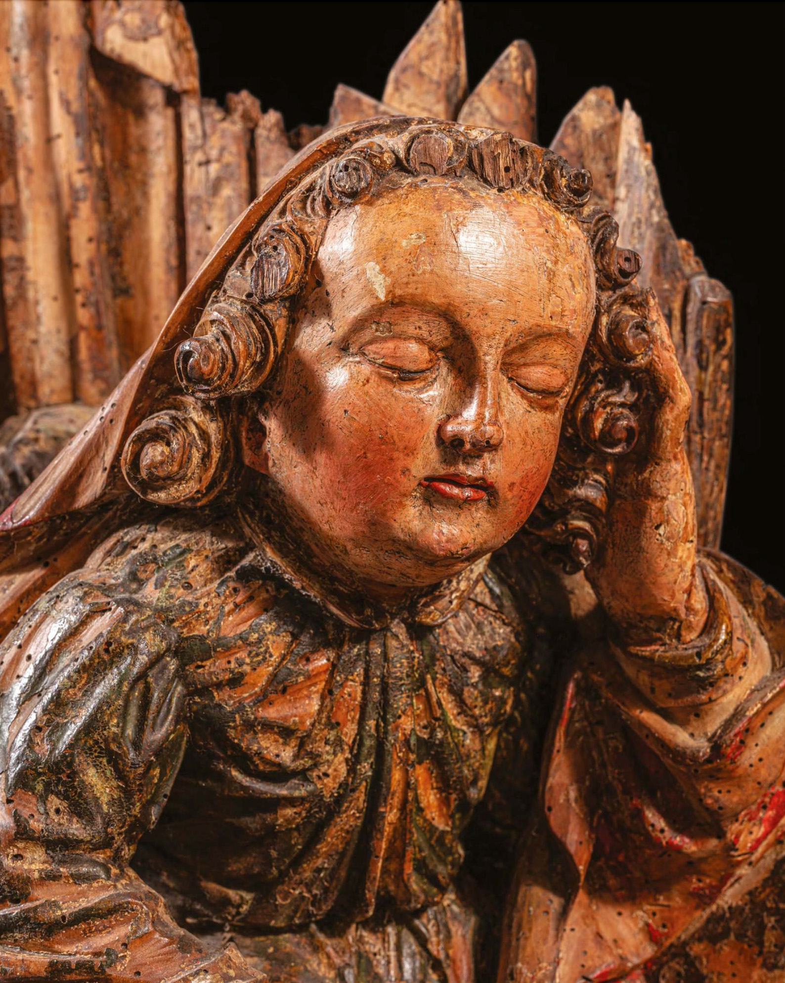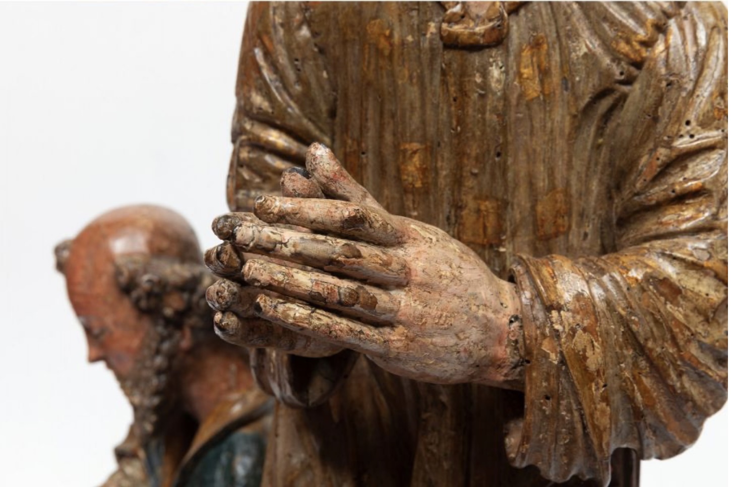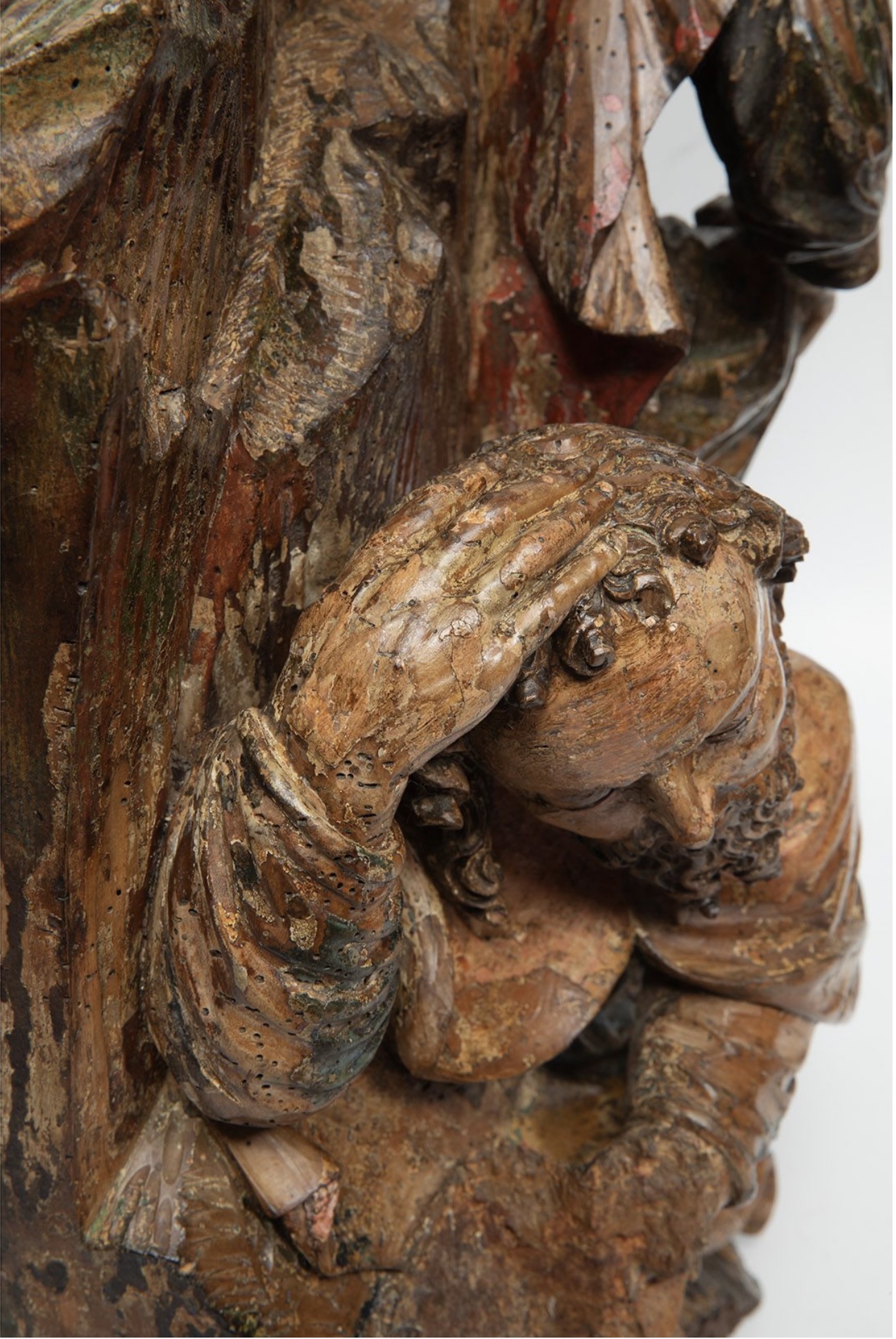 Deux importants groupes d’un même retable en tilleul polychromé, représentent le Christ au Mont des Oliviers. Le dos est évidé.