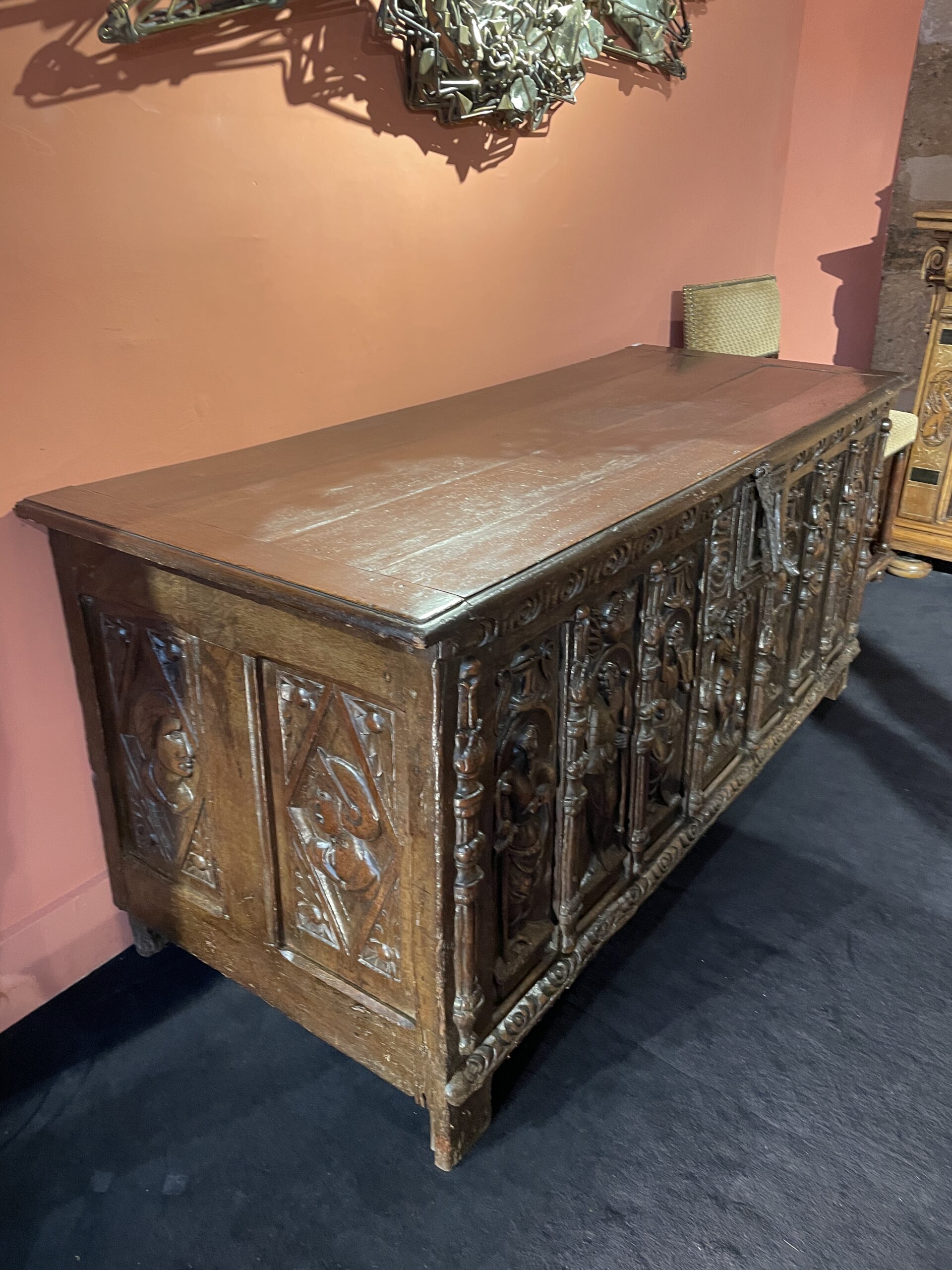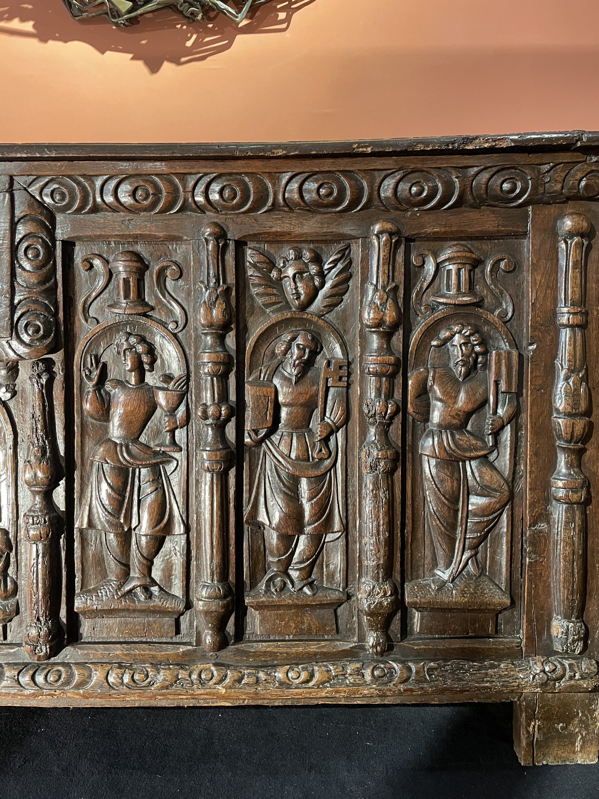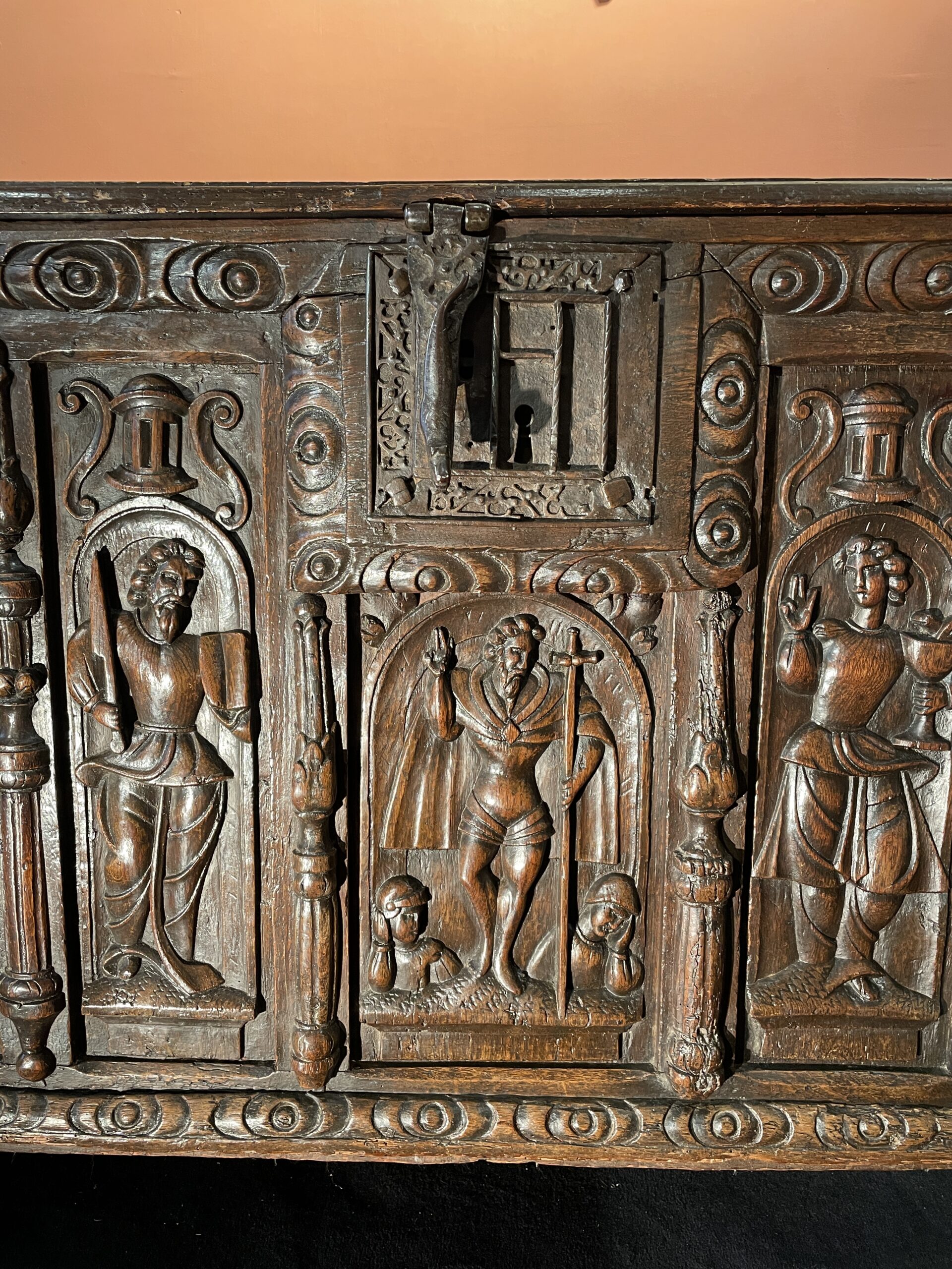 BEAUTIFUL OAKWOOD CHEST FROM THE 1st RENAISSANCE FIGURING SAINTS