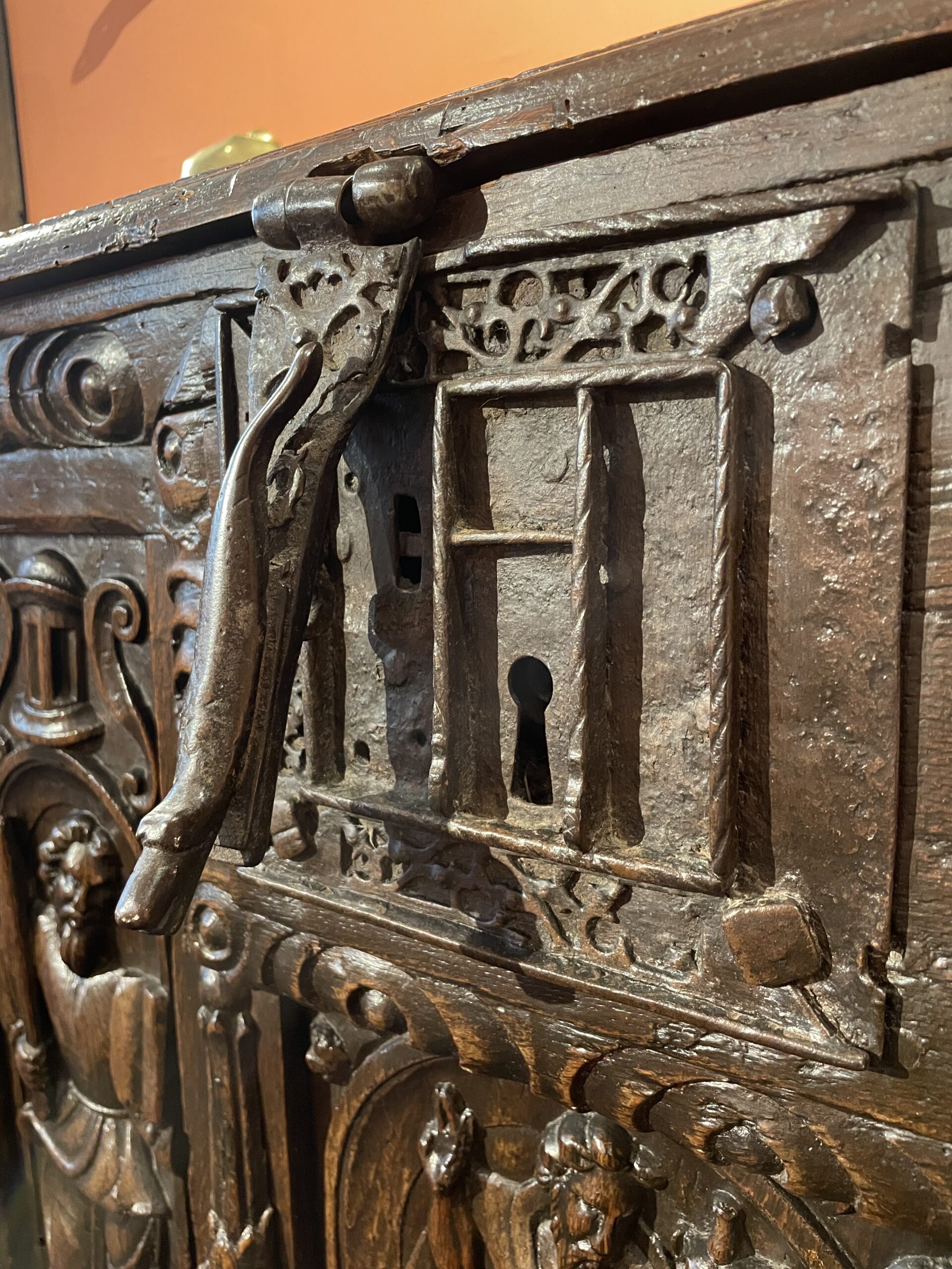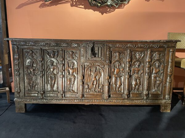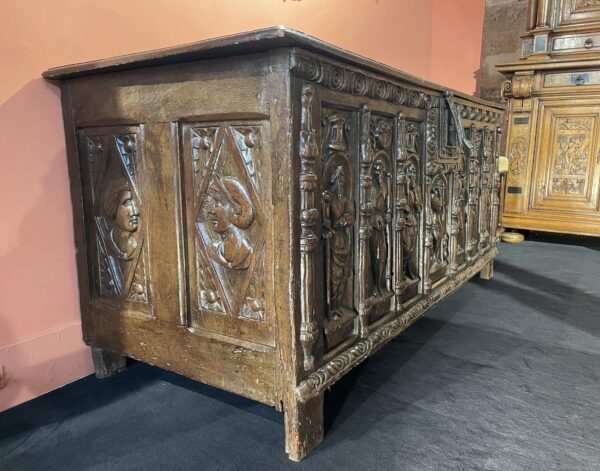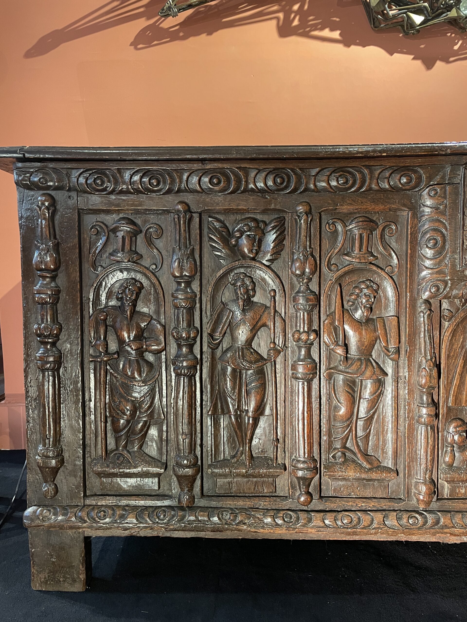 BEAUTIFUL OAKWOOD CHEST FROM THE 1st RENAISSANCE FIGURING SAINTS