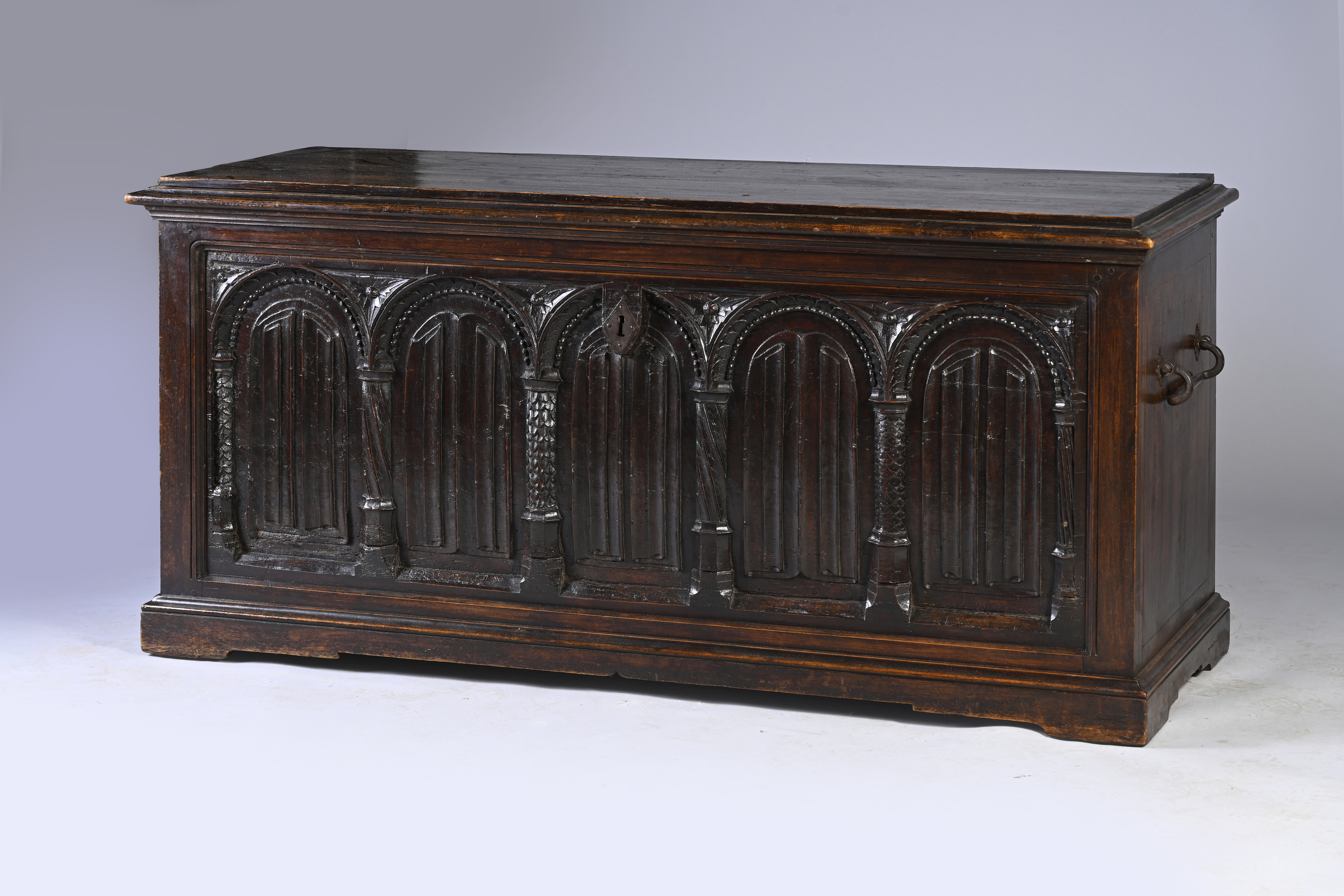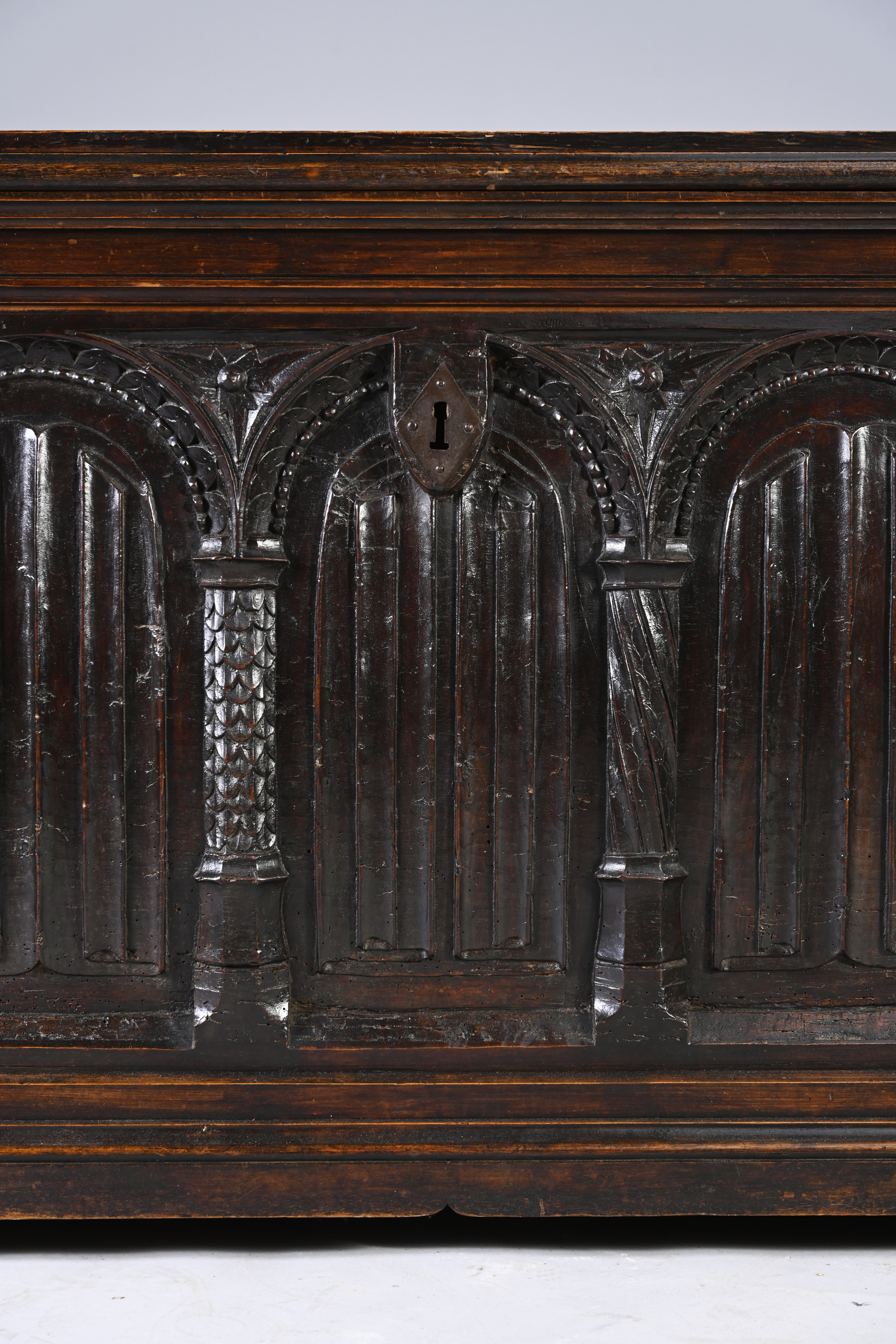 Ainsi, tout dans ce coffre rappelle le vocabulaire architectural gothique, en faisant de ce coffre une oeuvre de belle qualité des huchiers de la fin du XVème siècle.