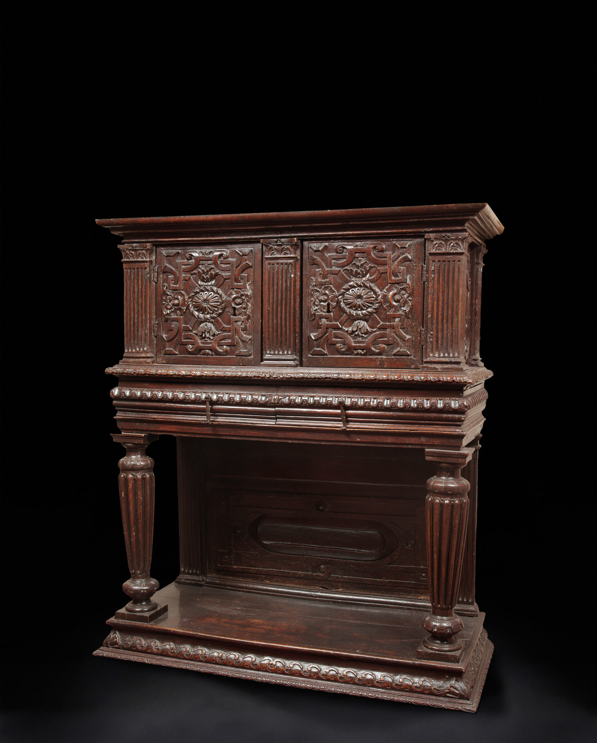 Le dressoir du Moyen-Age est un meuble en deux parties : la partie basse est vide, la partie haute est pleine et fermée.