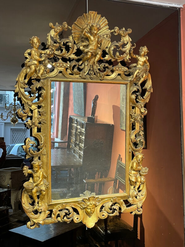 Ce miroir est par son ornementation et sa structure tout à fait typique de l’art baroque de la fin du XVIIe siècle.