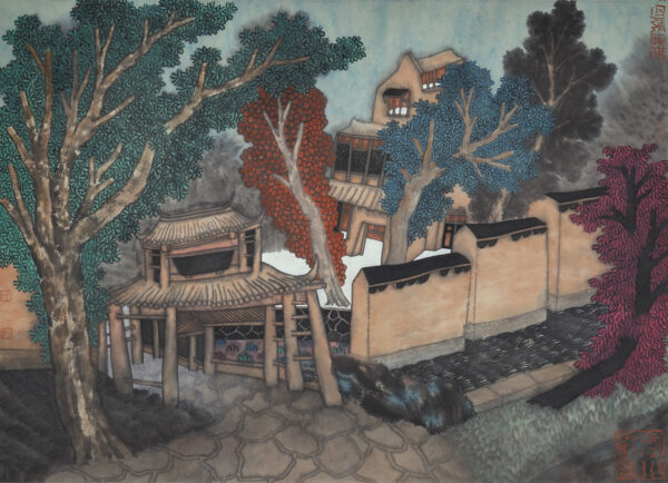 Se retrouver dans un endroit beau, cale, où la sérénité règne est une volonté commune de chaque être. Tao Hua Yuan est un état de solitude éloigné de toute contrainte terrestre. L’artiste utilise toujours un ton chaud et se conditionne pour effacer toutes les excitations en essayant de calmer son cœur. Il nous transmet par ses œuvres son esprit serein et sa vision du paradis.