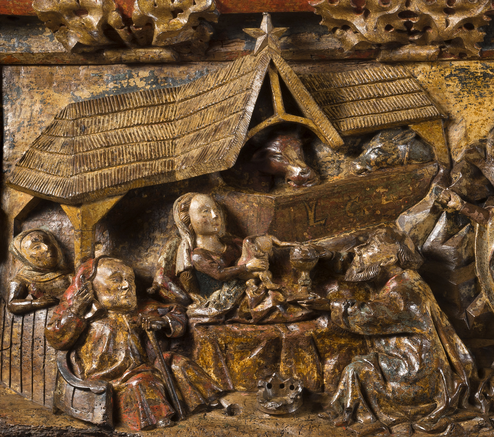 Le sculpteur sut représenter l’épisode de l’Adoration des Mages et de l’Annonce aux bergers avec un grand talent et force détails, donnant ainsi à voir une scène narrative et pittoresque. Les restes importants de la polychromie ajoutent à ces scènes déjà bien animées une puissance visuelle ainsi qu’un fort dynamisme.