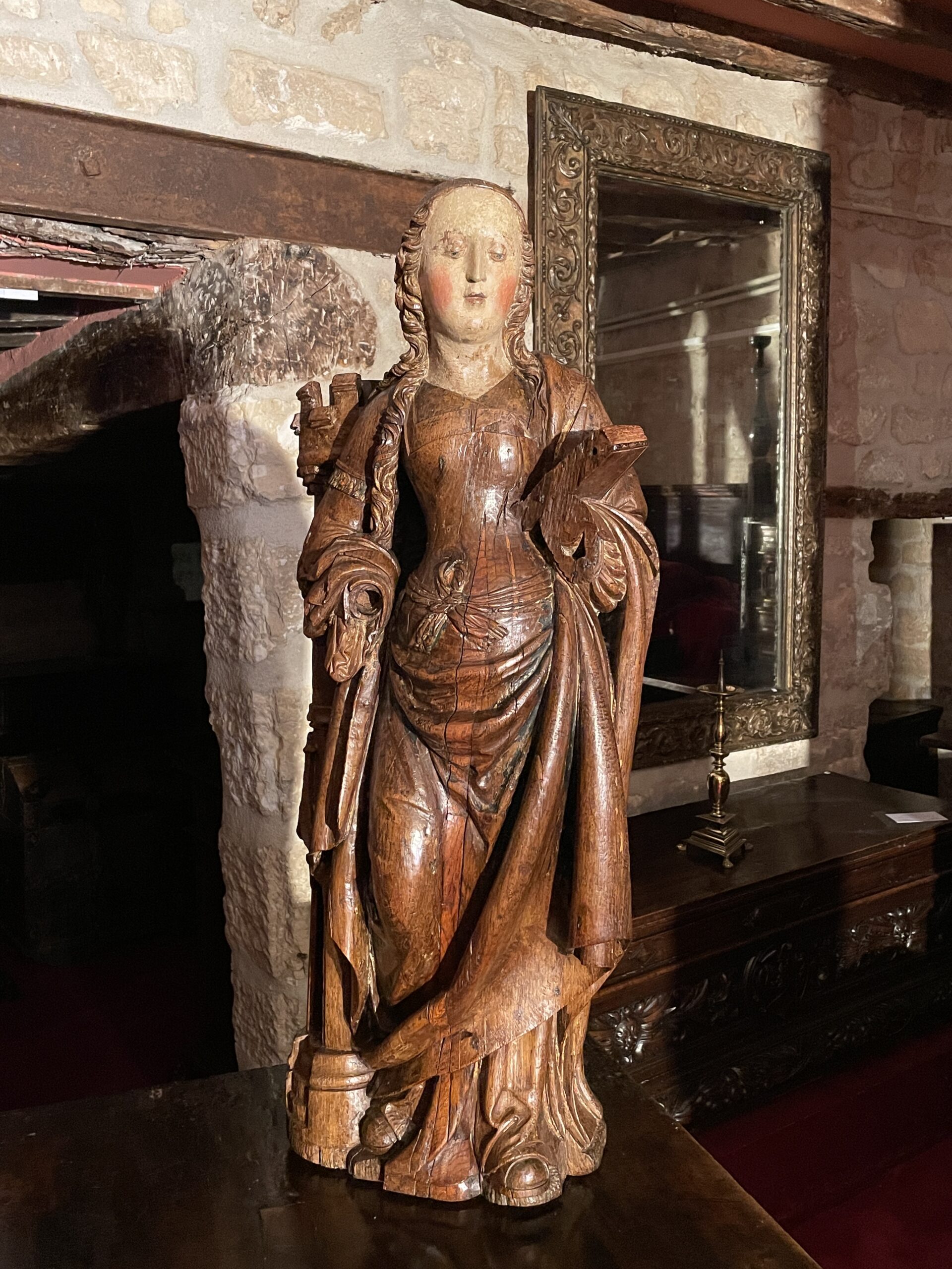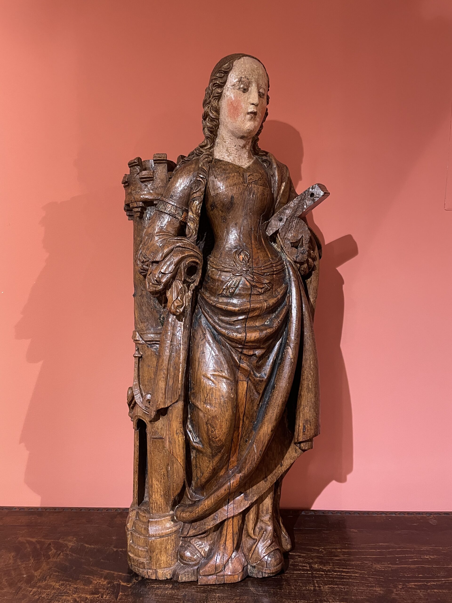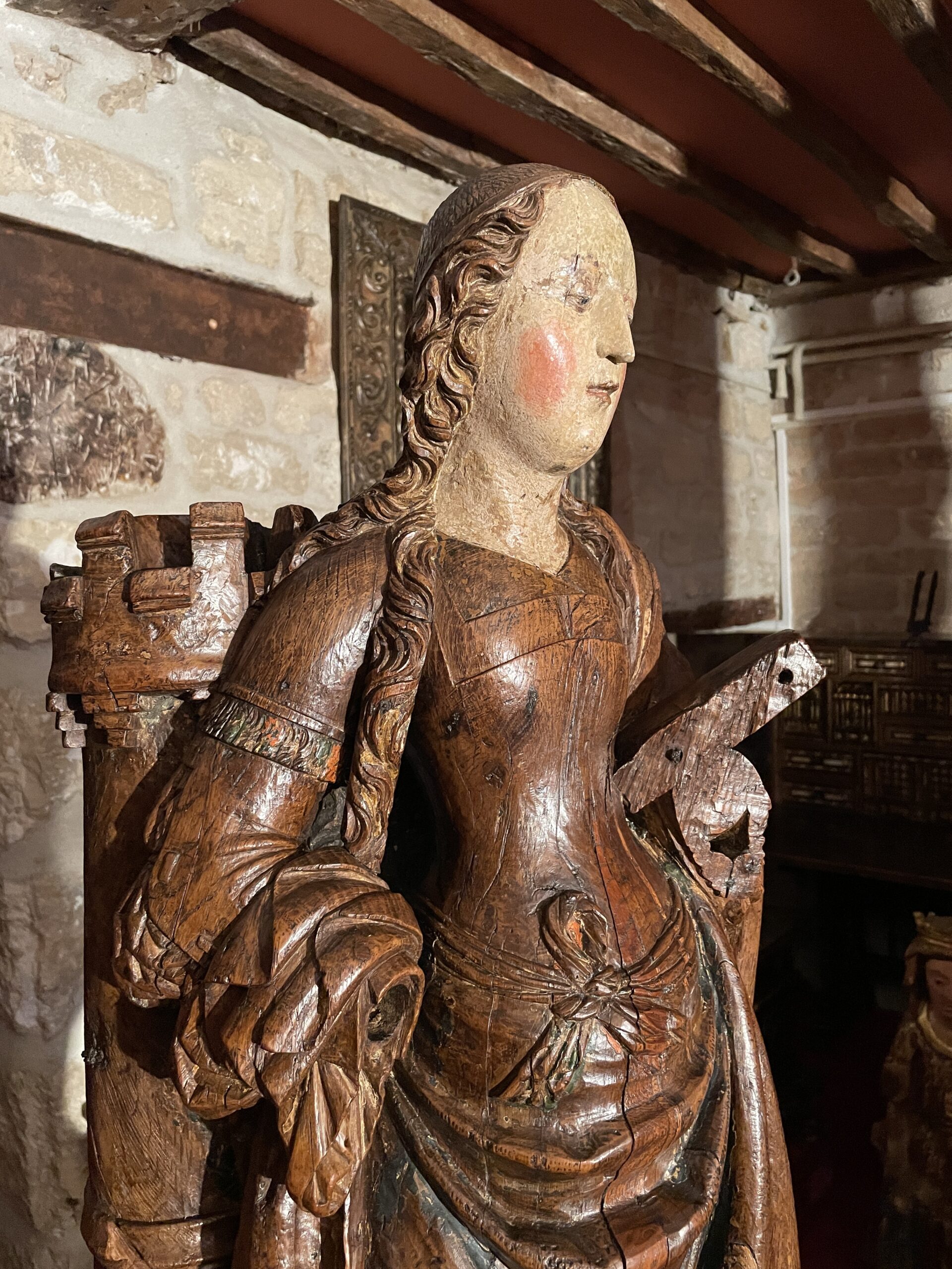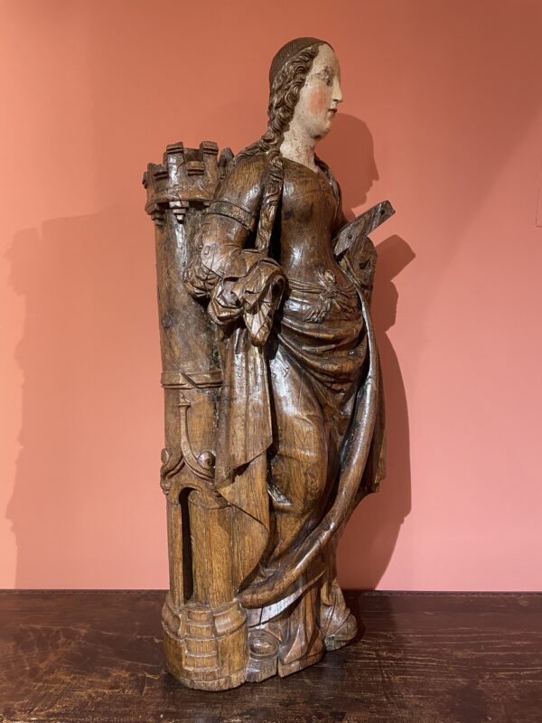 IMPORTANT BOIS SCULPTÉ REPRÉSENTANT SAINTE BARBE