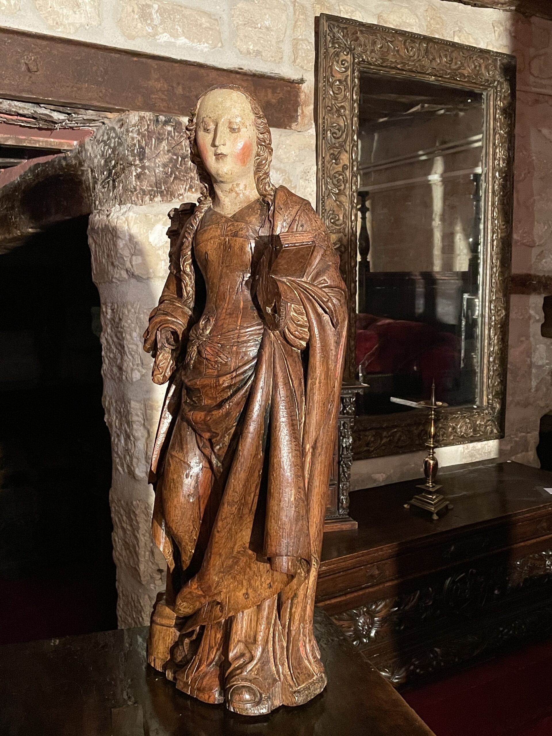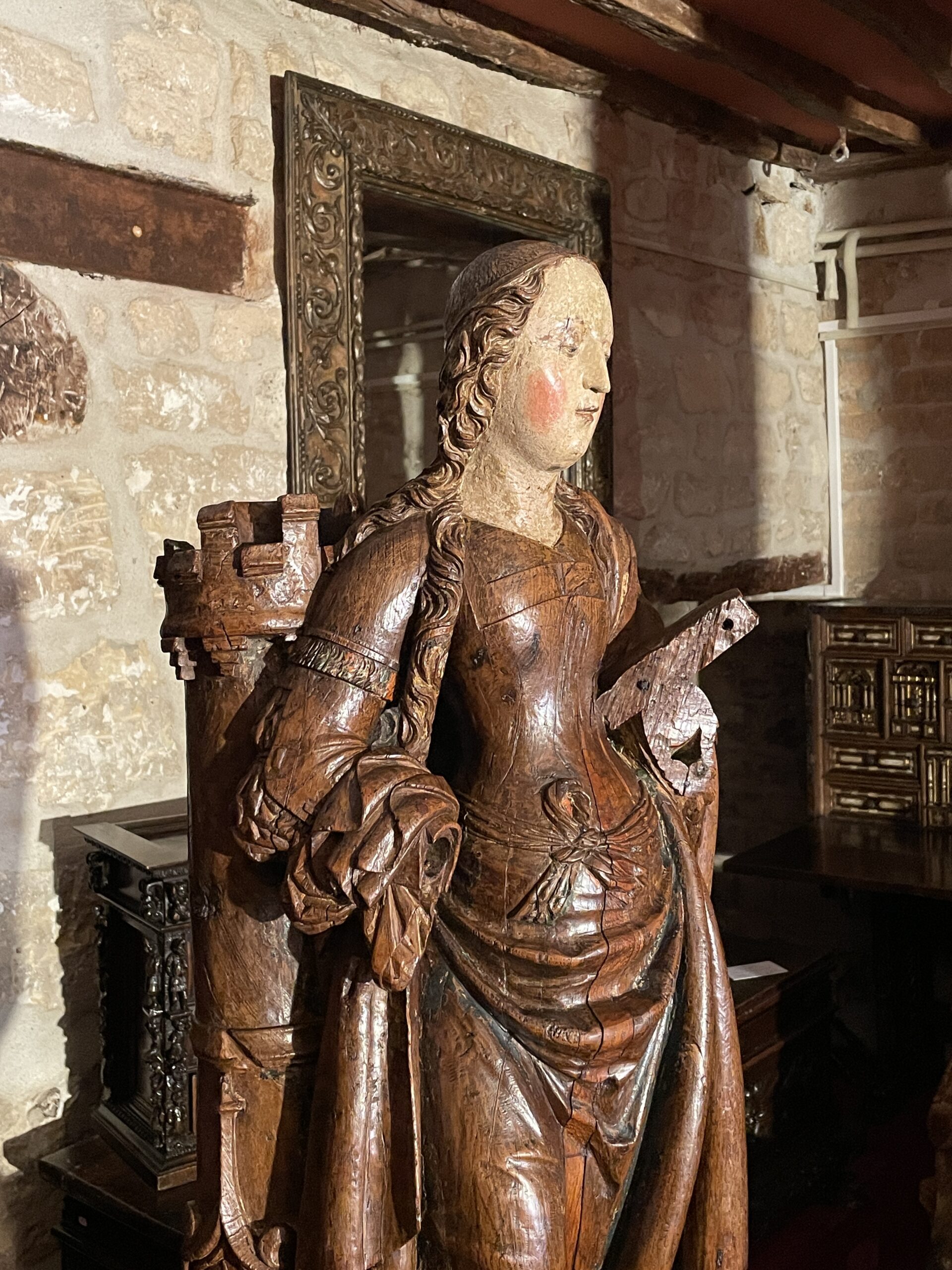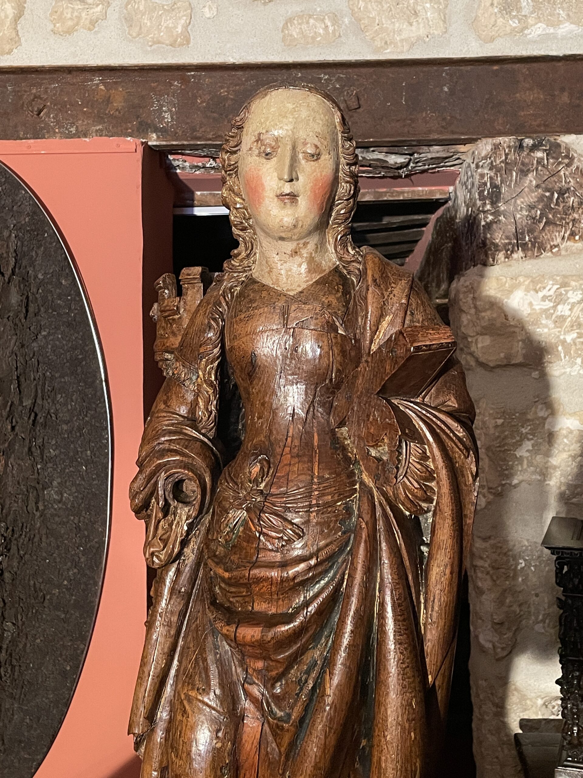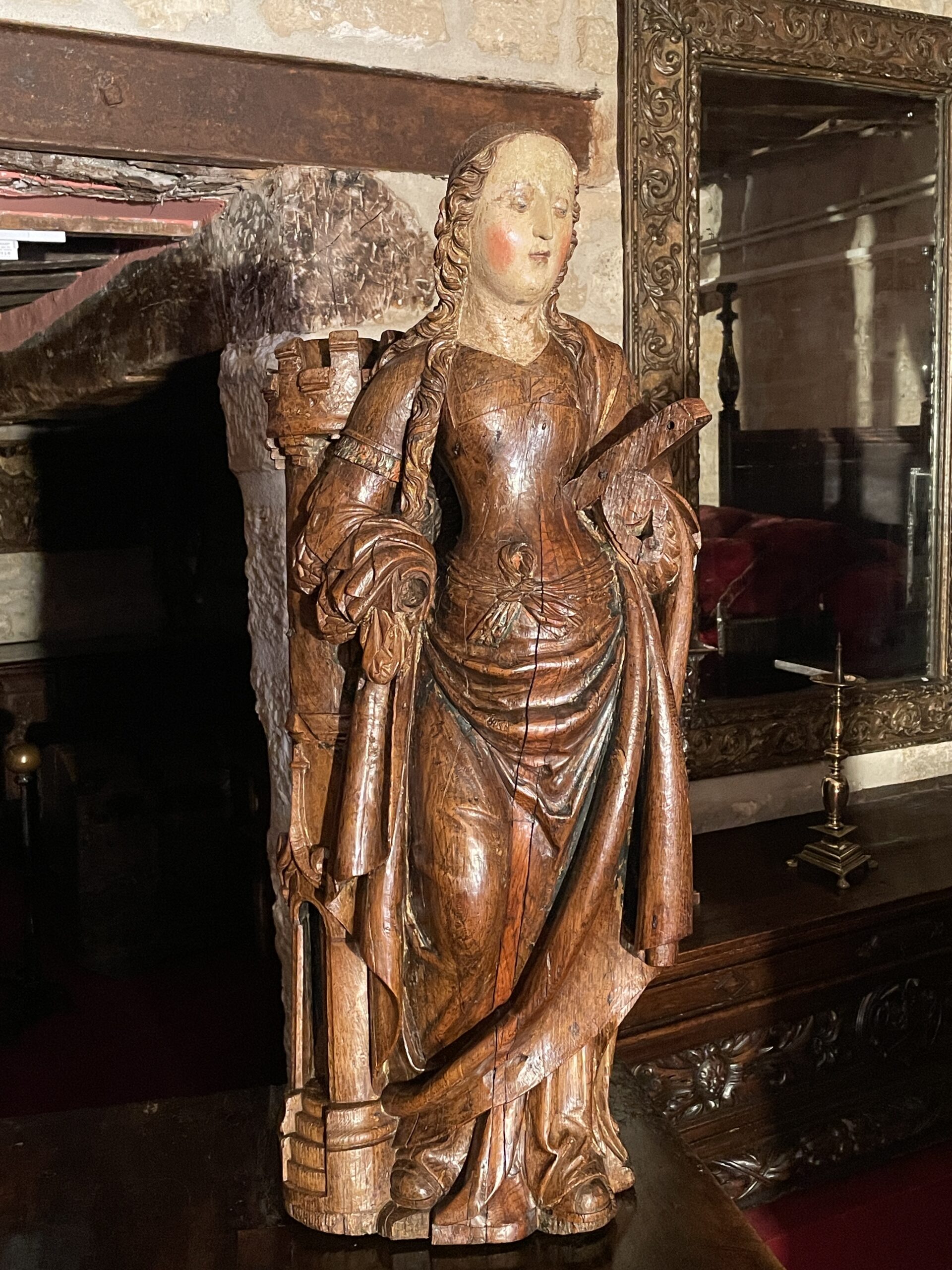 IMPORTANT BOIS SCULPTÉ REPRÉSENTANT SAINTE BARBE