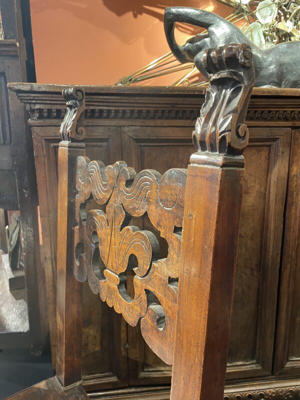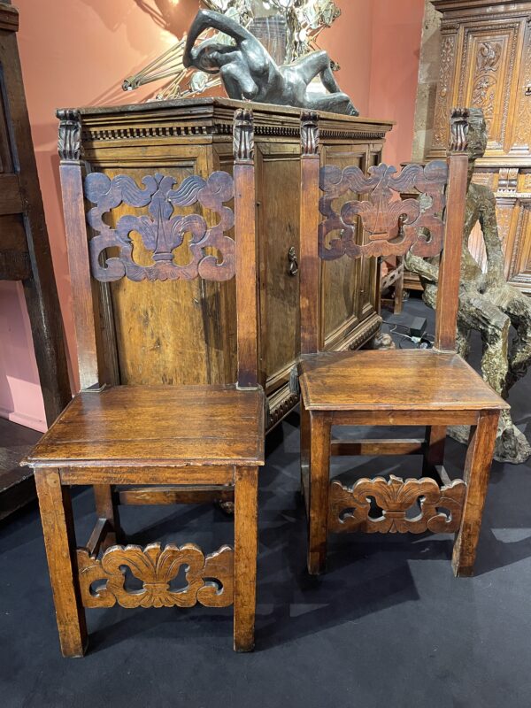 De belle facture ces chaises à haut dossier allient l’utile à l’agréable et sont tout à fait représentatives de la Renaissance italienne.
