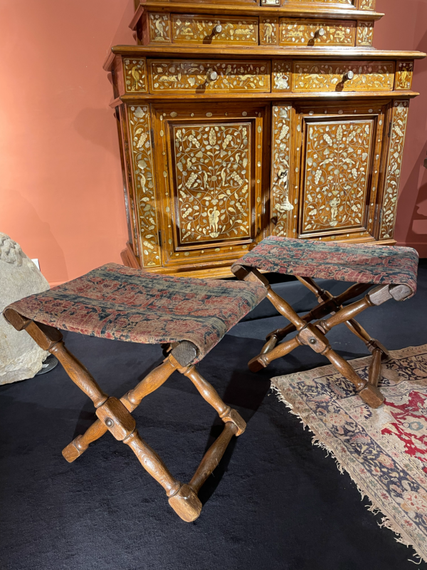 Si le siège pliant ou ployant est connu par l’iconographie et les inventaires dès avant le XVème siècle, c’est à partir du règne de Louis XIII qu’il remplace les tabourets et autres escabelles jugés trop encombrants.