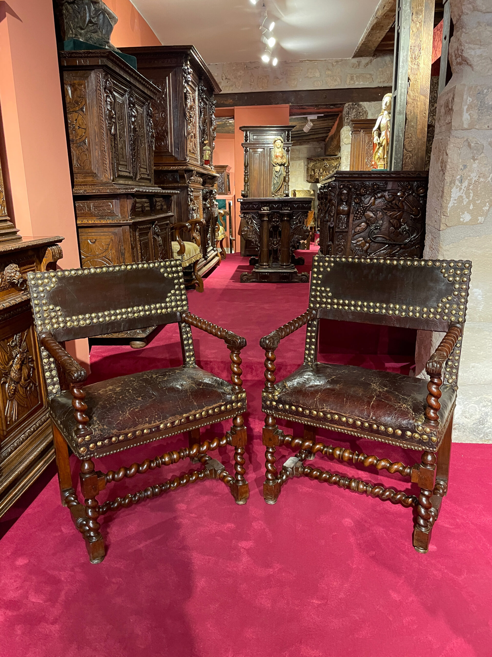 L’unité de la qualité du tournage, le talent dont les tourneurs firent preuve pour réaliser les torsades font de cette paire de chaises à bras, des pièces de grand intérêt. Elles caractérisent la production française de la fin du XVIème siècle et du début du XVIIème siècle.