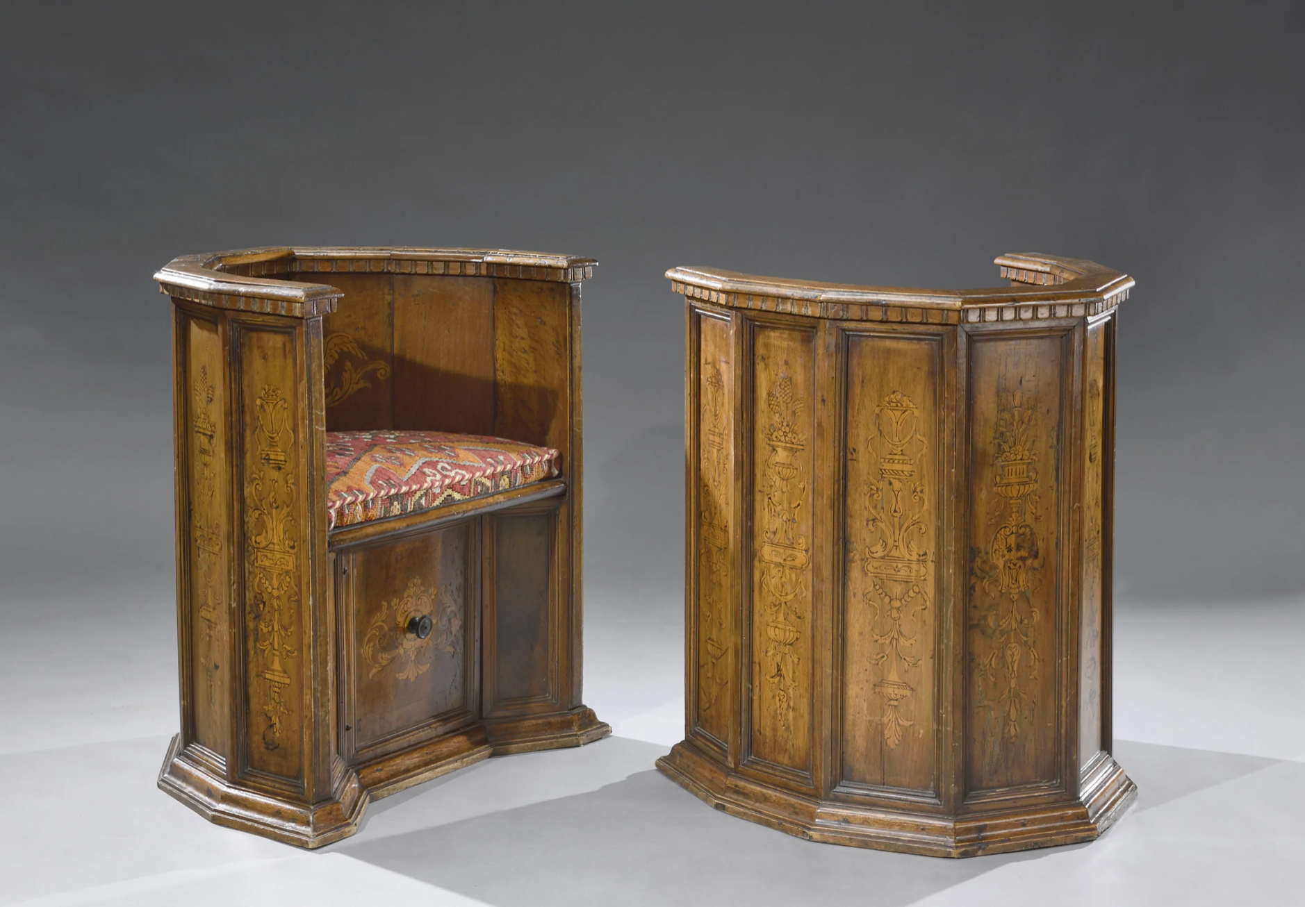 RARE PAIRE DE DEUX SIÈGES DITS « SEDILE A POZZETTO »