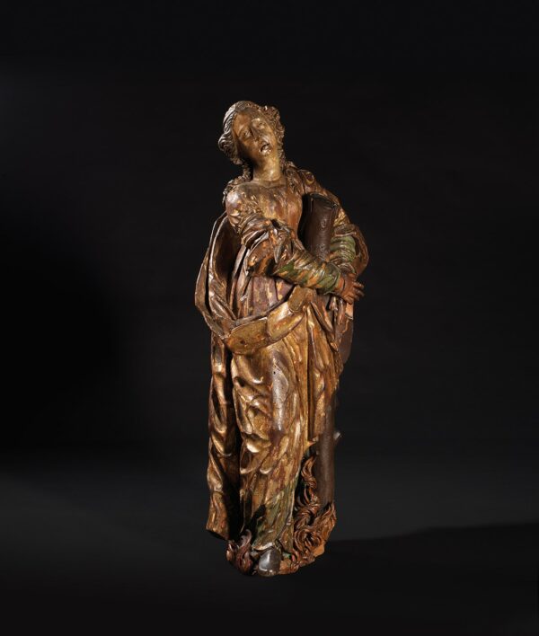 Réalisée dans un bois de tilleul, elle est l’œuvre d’un artiste souabe, où son culte était largement répandu.