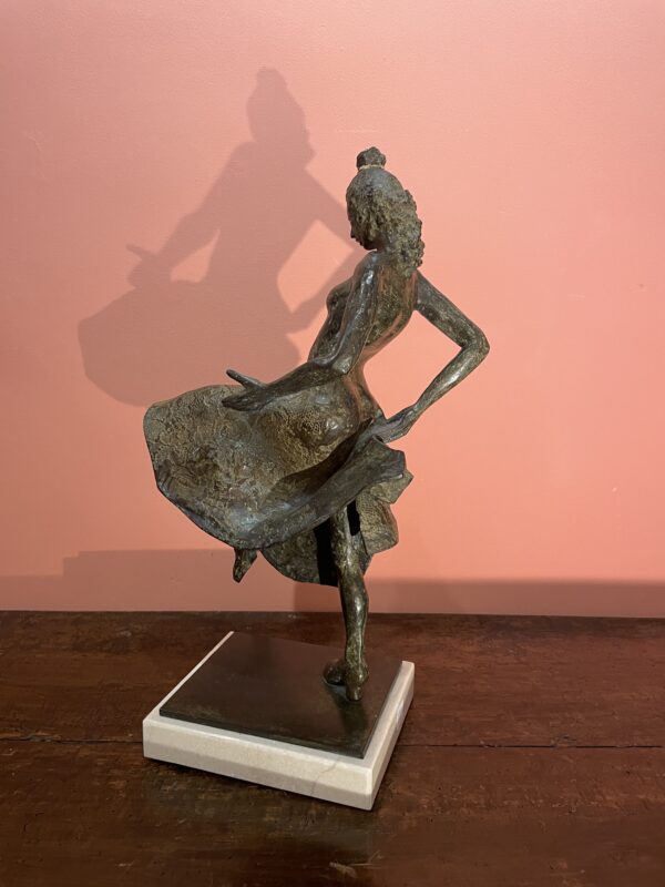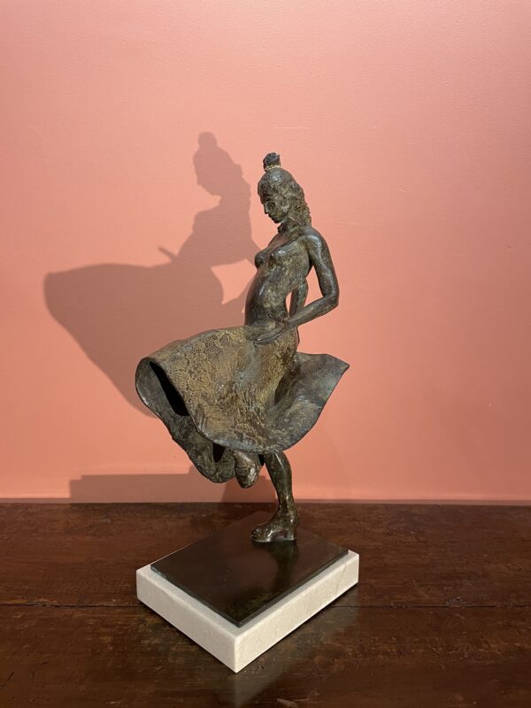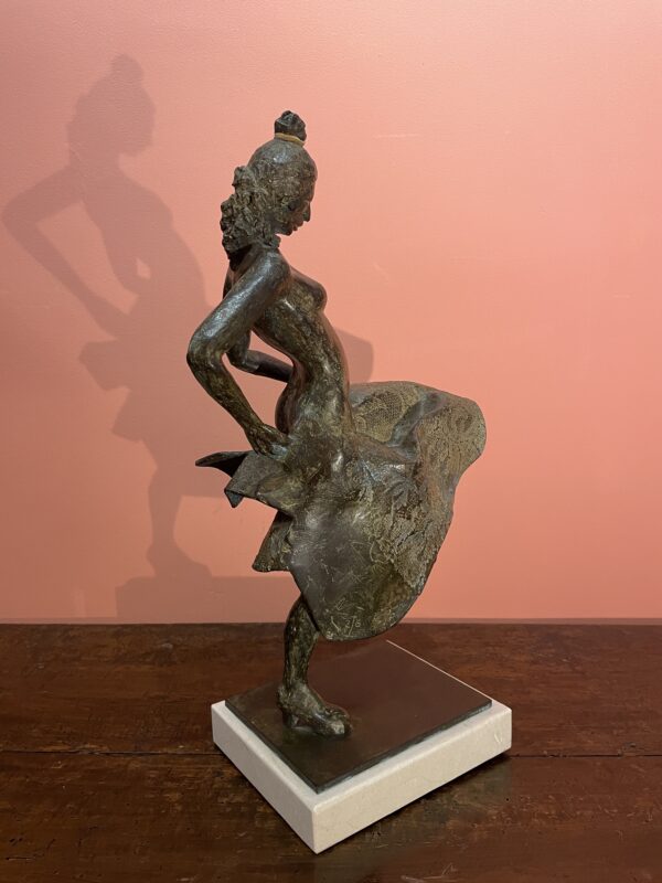 Silvino Poza nait à Valladolid en 1926. En 1953, il entre à l’École nationale des arts appliqués et à l’École des beaux-arts. Il débute comme graveur dès 1959. En 1970, il reçoit le premier prix au Salon d’automne de Palma de Majorque. Il se tourne en 1987 vers la sculpture. En 1992, il participe à l’Exposition universelle de Séville, exposant à la Caja de Ahorros de Pamplona. Il a exposé en Espagne, en France, en Italie, en Belgique, en Suisse, en Allemagne, aux États-Unis, à Tahiti, en Corée et au Japon. Il s’éteint à Madrid en 2010. Cet artiste s’exprime dans un langage figuratif et emploie le bronze comme matière première avec la méthode dite « de la cire perdue » . Son oeuvre très élaborée demande un travail de ciselure très précis. Silvino Poza sait mieux que personne poser son regard sur une pose qui lui procure un moment de plaisir, une émotion au point qu’il se donne comme mission de nous les communiquer mais pas avec une méthode fugitive simplement avec le langage du coeur , celui qui ne s’effacera jamais puisqu’il est devenu une oeuvre.