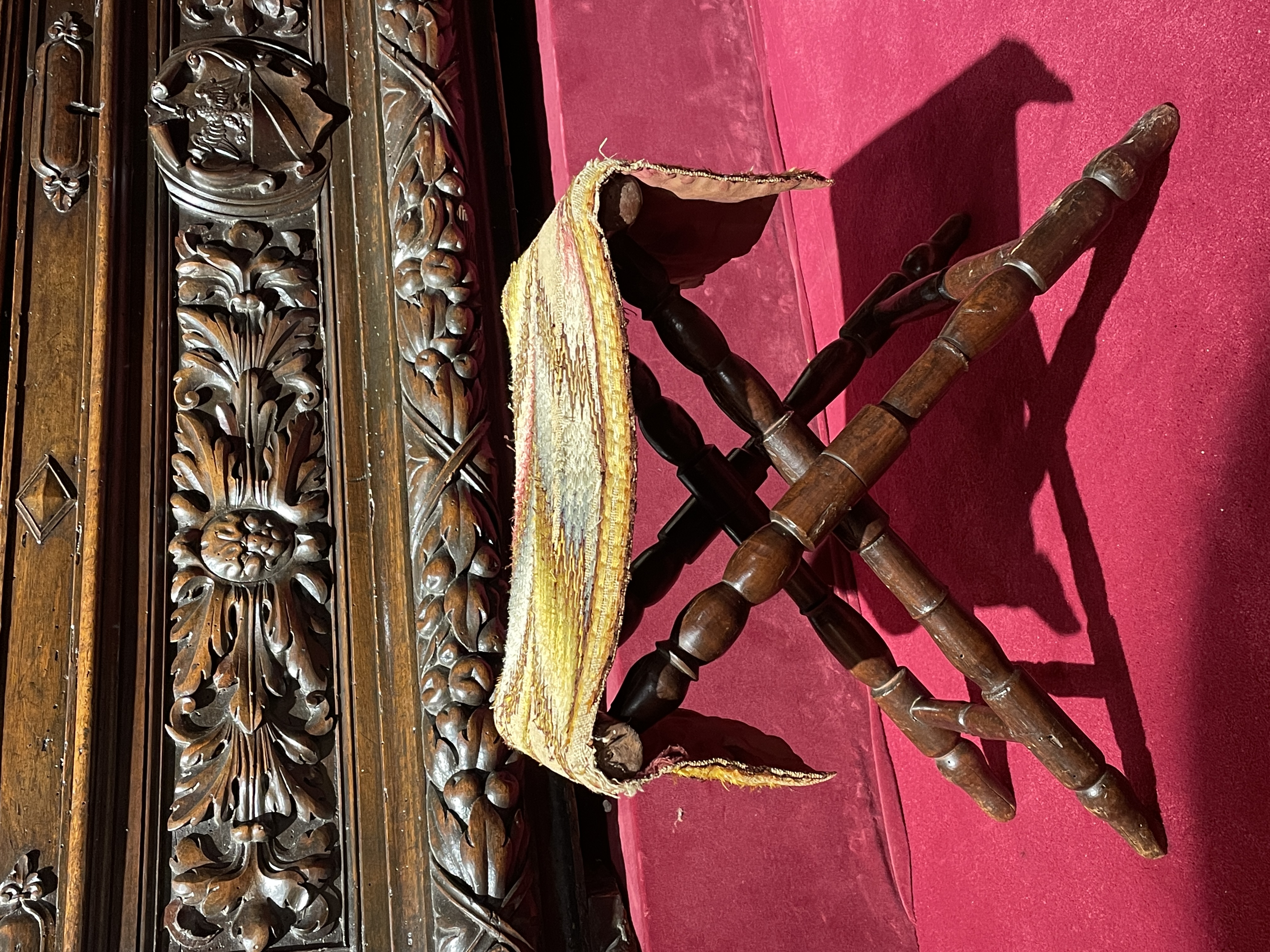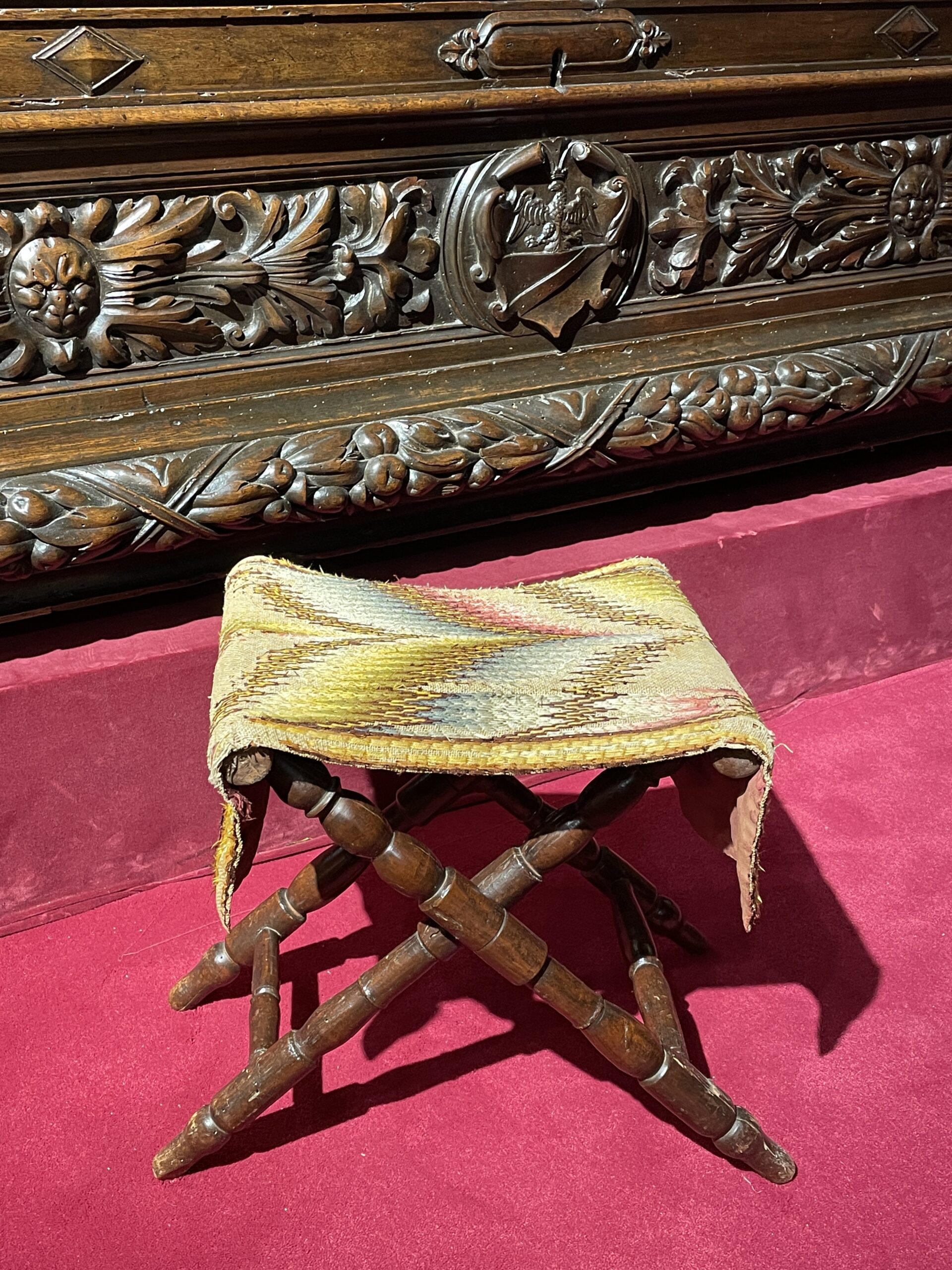 Il est recouvert d’une broderie en point de Hongrie en laine et soie, qui fait office d’assise.