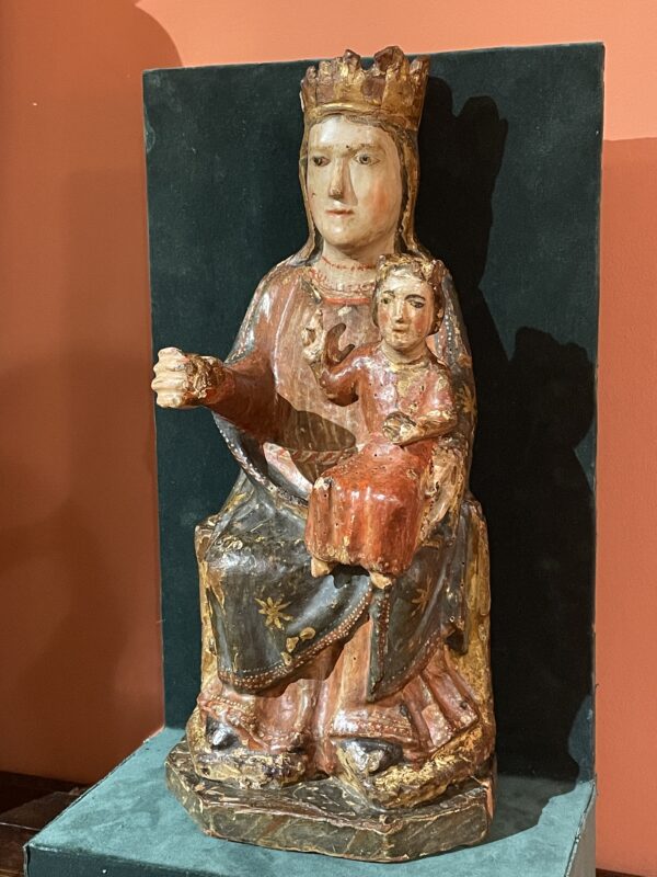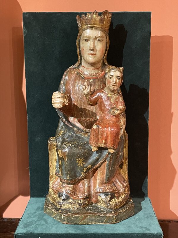 Depuis le XIIème siècle, l’Espagne et le centre de la France sont spécialisés dans ces figures en majesté, leur donnant souvent un aspect impressionnant. Ce modèle plus tendre appartient incontestablement à ce type de sculpture religieuse qui résume l’essence de l’Art médiéval.
